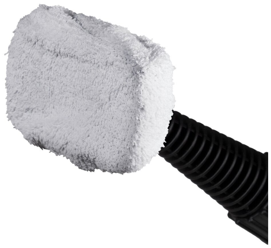 Точечное сопло (1 шт) Малая круглая щетка-насадка с полимерной щетиной (1 шт) Насадка для одежды (1 шт) Гибкий шланг для подачи пара (1 шт) Насадка для мытья окон/дверей (1 шт) Обтяжка из махровой ткани (1 шт) Мерный стакан (1 шт) Воронка (1 шт) Угловая насадка (1 шт)