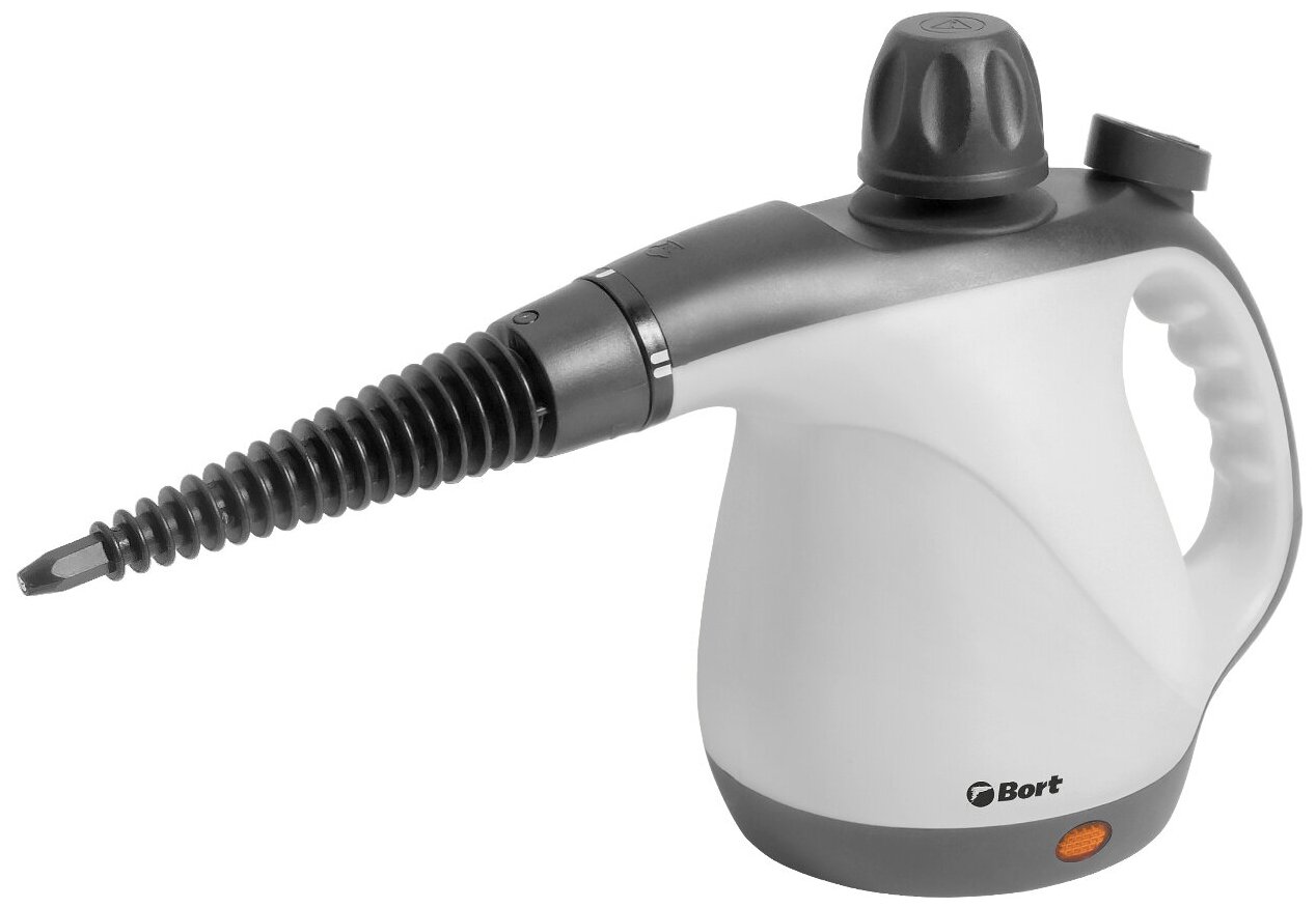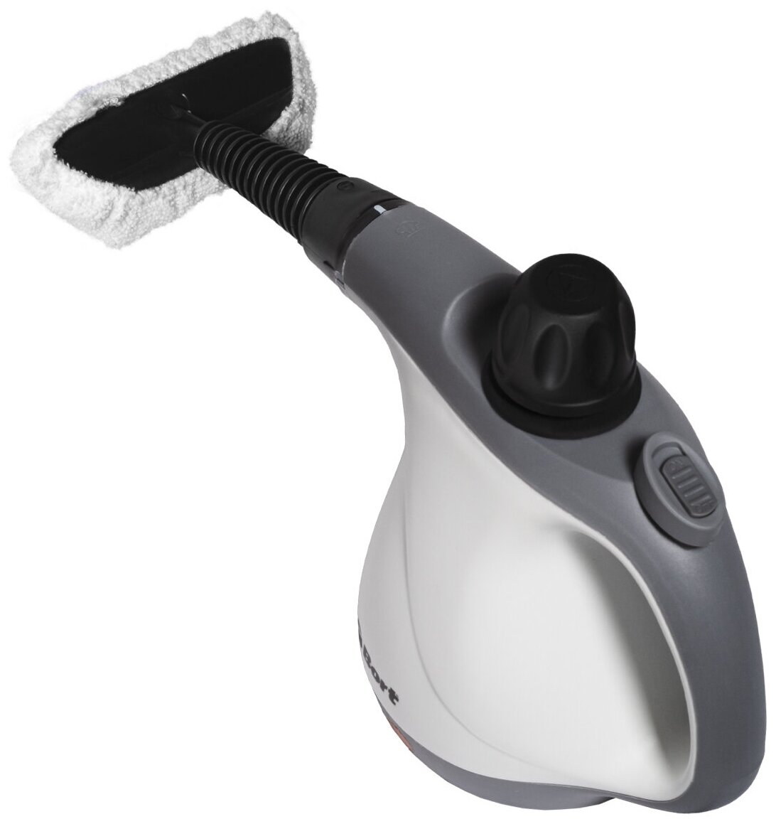 Точечное сопло (1 шт) Малая круглая щетка-насадка с полимерной щетиной (1 шт) Насадка для одежды (1 шт) Гибкий шланг для подачи пара (1 шт) Насадка для мытья окон/дверей (1 шт) Обтяжка из махровой ткани (1 шт) Мерный стакан (1 шт) Воронка (1 шт) Угловая насадка (1 шт)