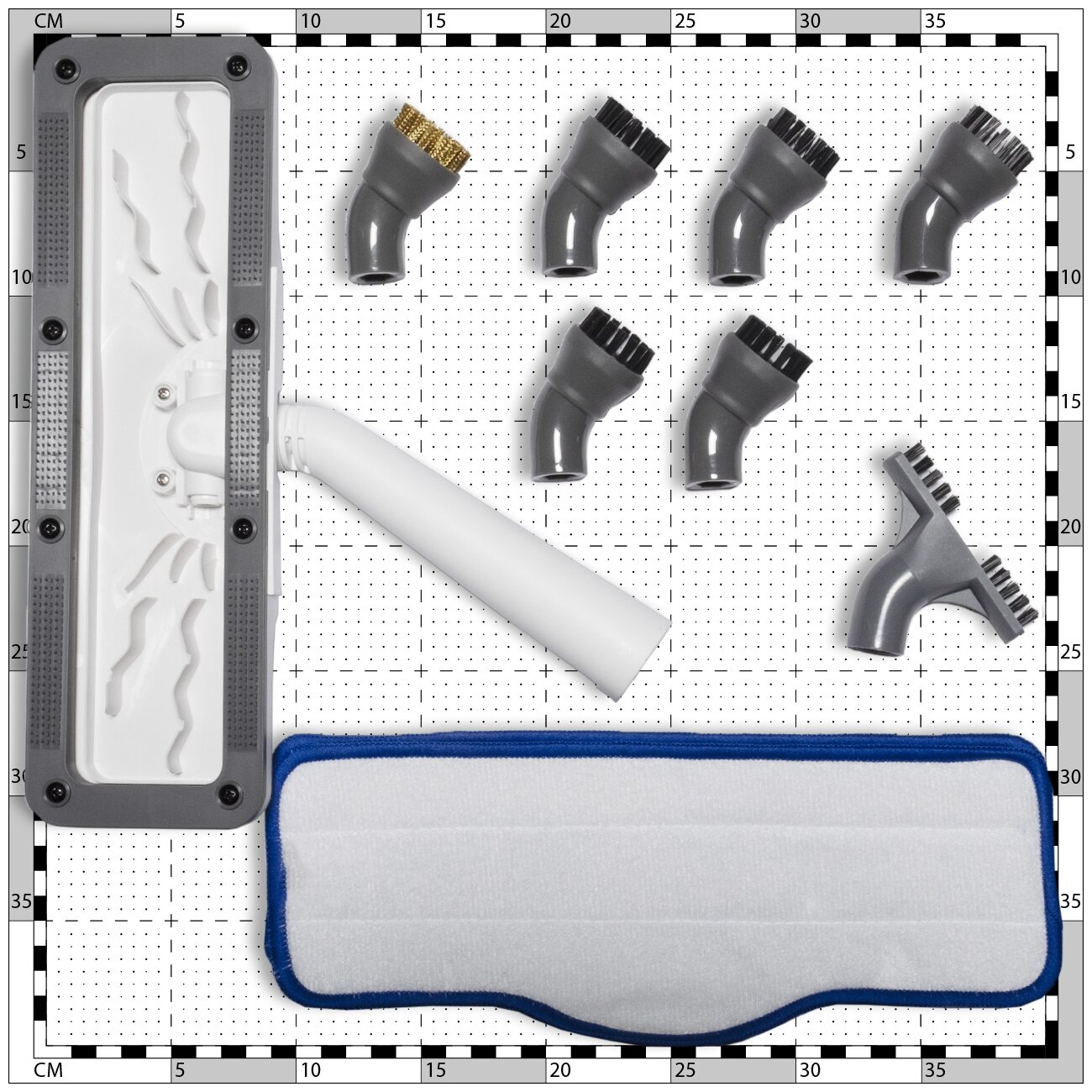 комплектация: точечное сопло; насадка для мытья окон/дверей; малая круглая щетка-насадка с металлической щетиной; малая круглая щетка-насадка с полимерной щетиной; широкая щетка-насадка с полимерной щетиной; махровая салфетка 2 шт; трубка удлинительная алюминиевая; мерный стакан; насадка для мытья полов