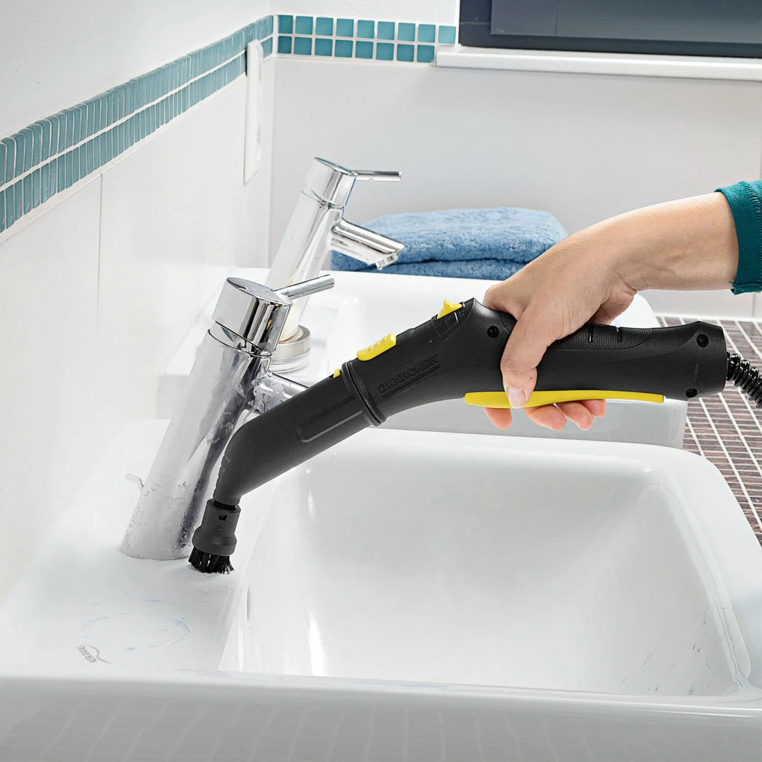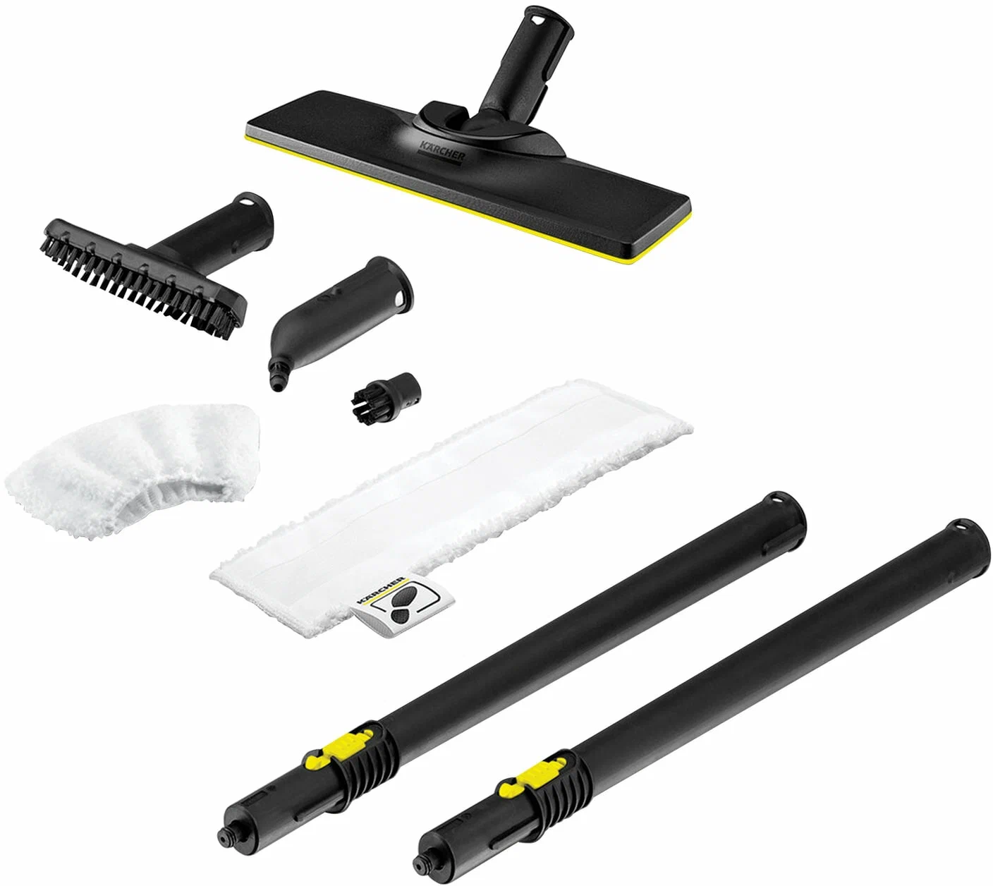 отсек для хранения насадок, ручка для переноски, съемный резервуар для воды, напольная