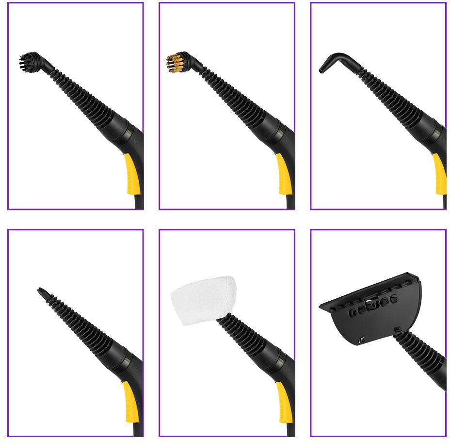 насадка для отпаривания, насадка с резиновым скребком, струйная насадка, угловая насадка, круглая латунная щетка, круглая нейлоновая щетка, щетка для пола