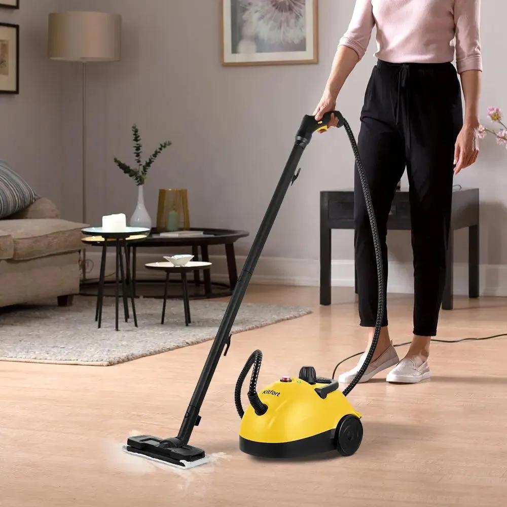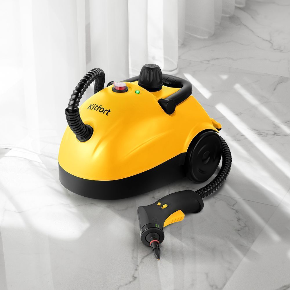 Паровой очиститель Kitfort КТ-9136-1 удаляет жир, грязь и известковые отложения, подходит для домашнего использования и для уборки вне помещений. Установлены три режима работы: пароочиститель, паровая швабра, отпариватель. Давление не превышает 3 бар. Время нагрева — до 8 минут. Интенсивность подачи пара достигает 50 г/мин. Установлен большой резервуар для воды из нержавеющей стали объемом 1 л, что позволяет продолжительное время использовать устройство.