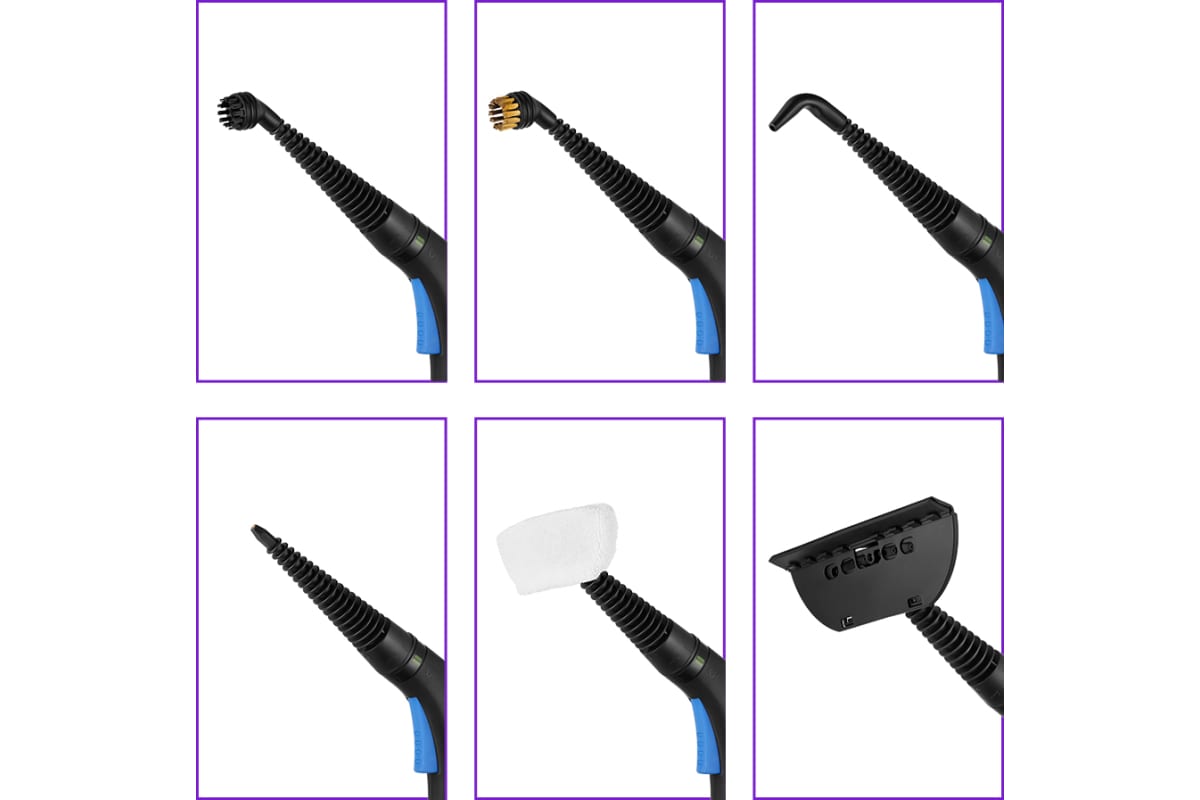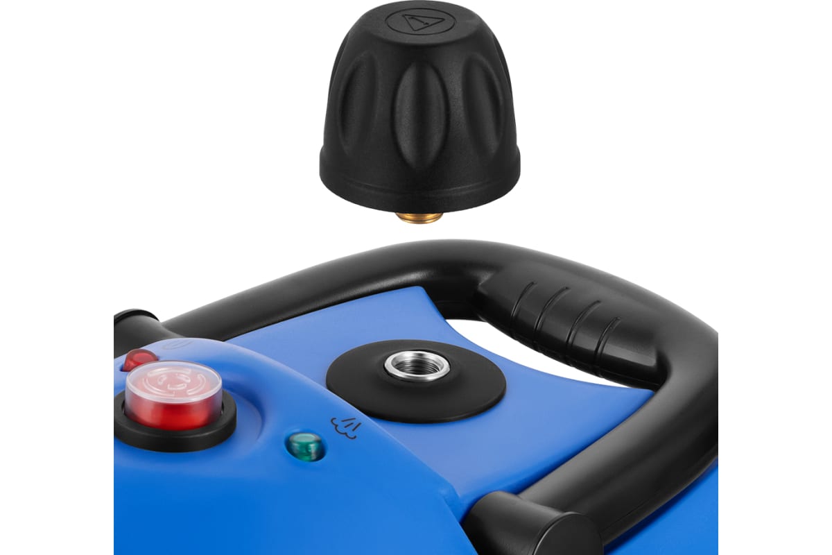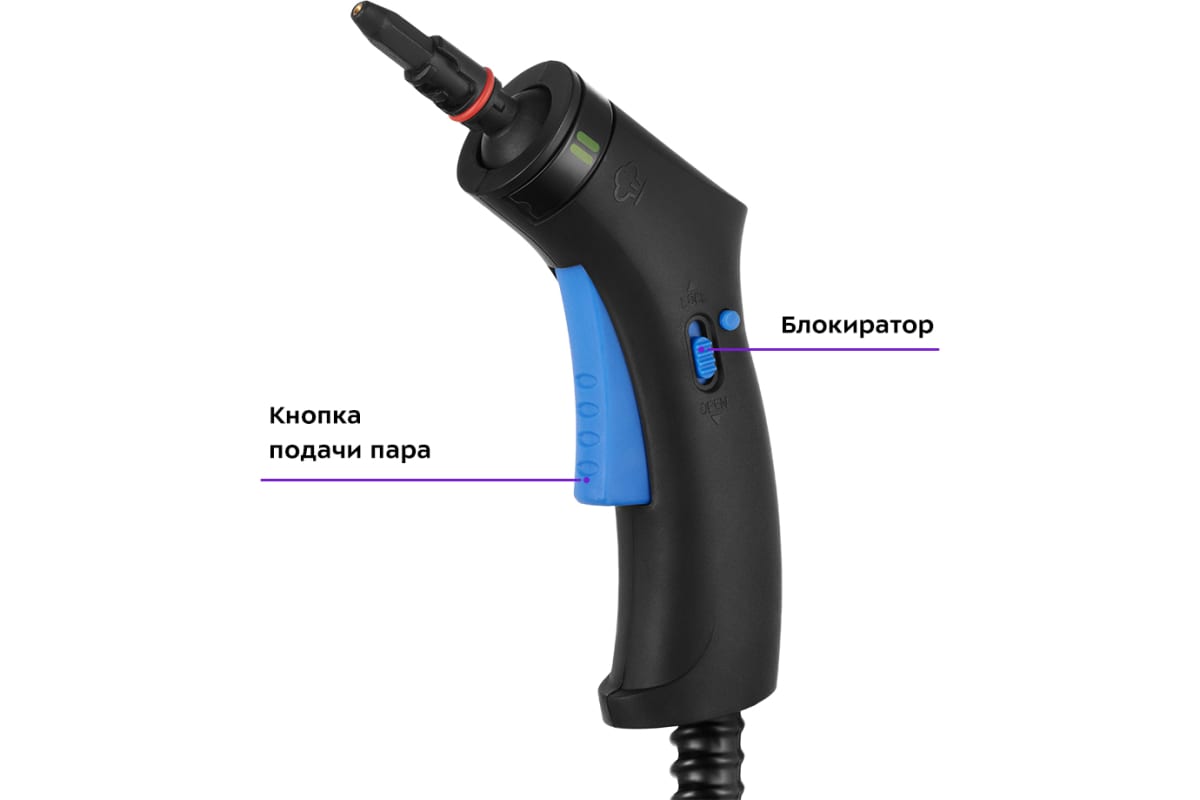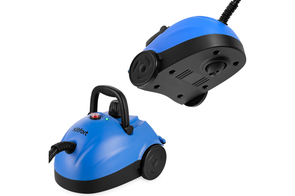 На корпусе пароочистителя есть ручка для переноски. Колеса позволяют с легкостью перемещать пароочиститель, не поднимая его. Большое количество насадок в комплекте поможет очистить труднодоступные или сильнозагрязненные поверхности.
