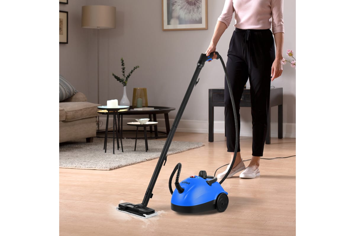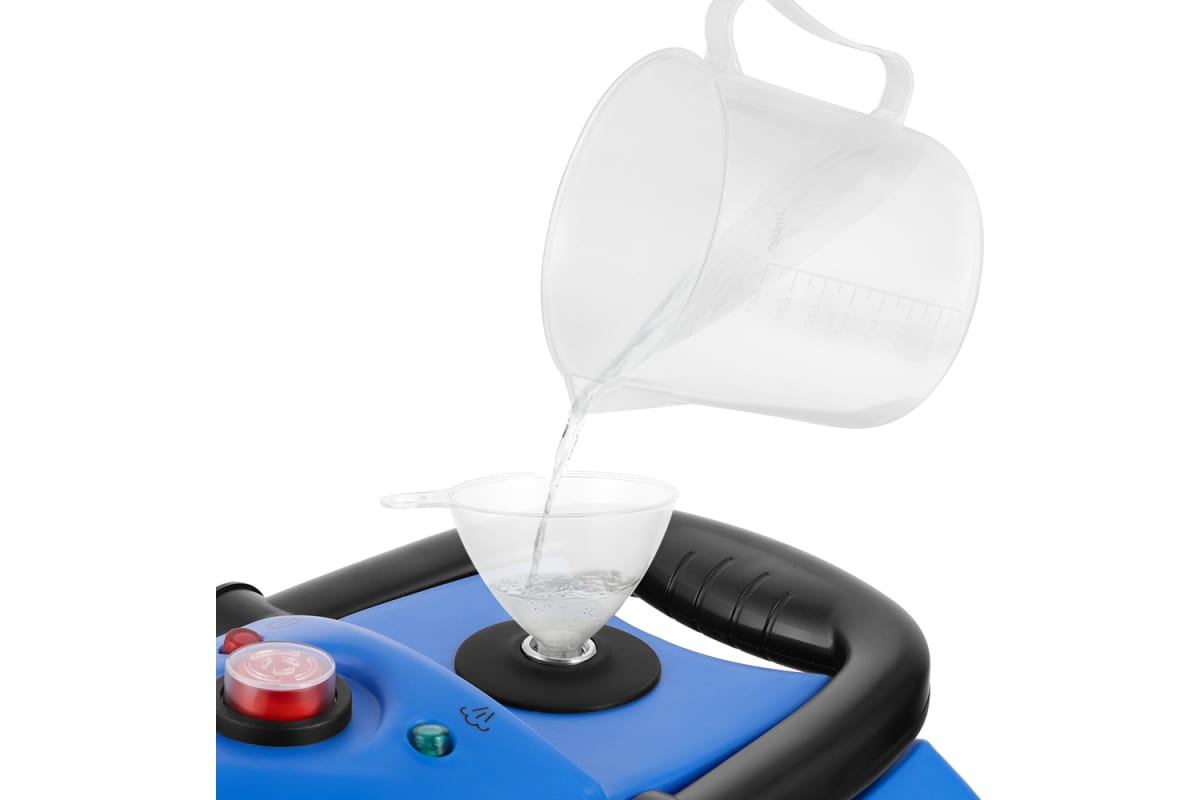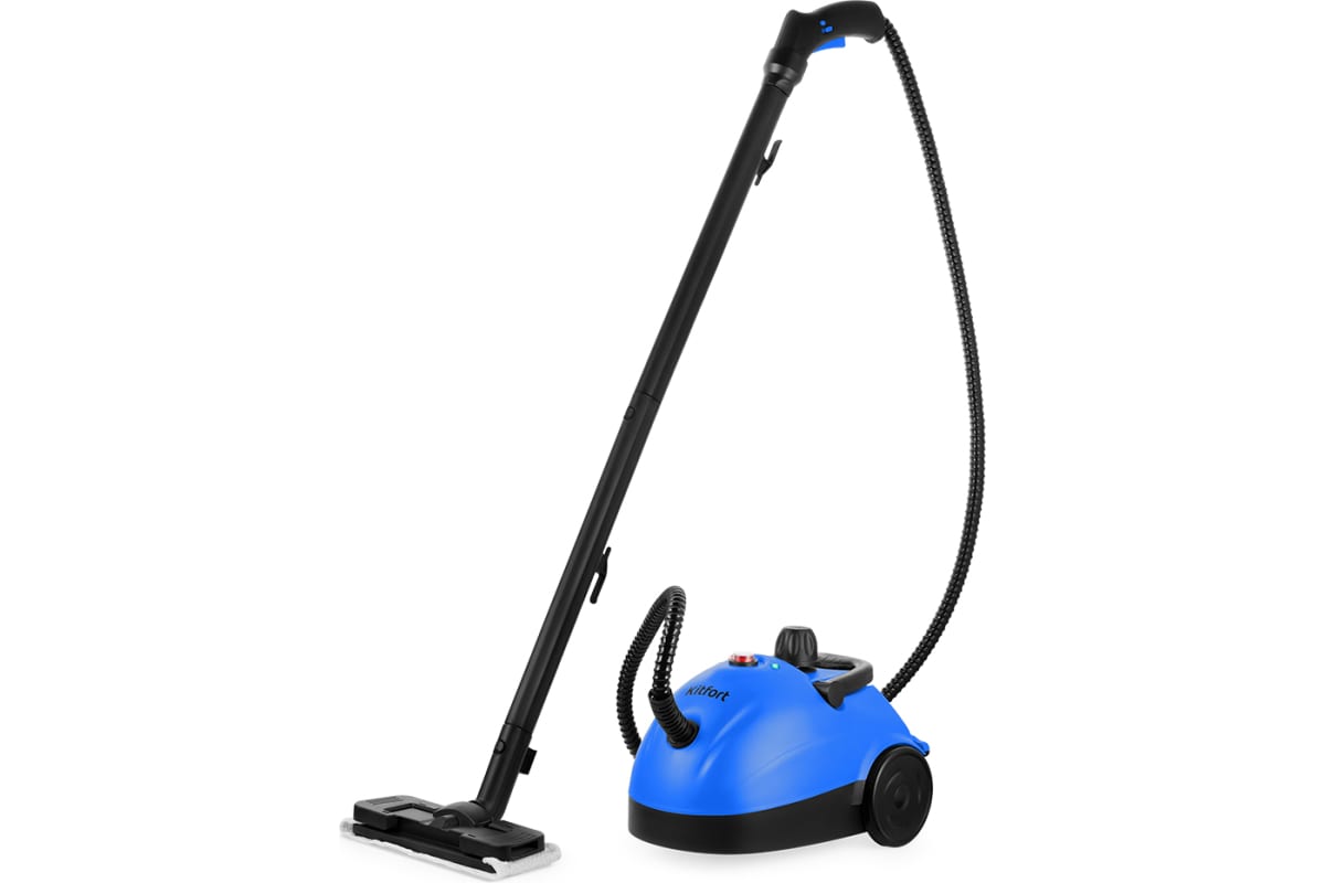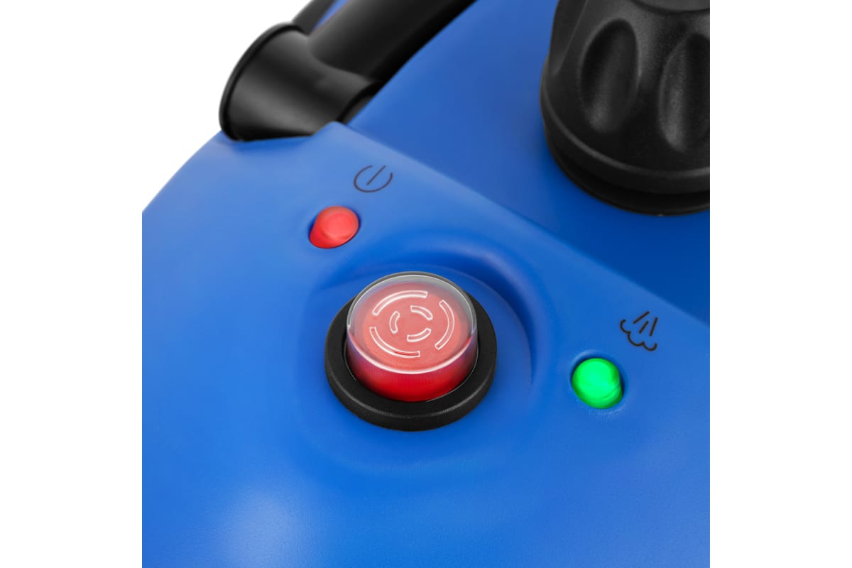 На корпусе пароочистителя есть ручка для переноски. Колеса позволяют с легкостью перемещать пароочиститель, не поднимая его. Большое количество насадок в комплекте поможет очистить труднодоступные или сильнозагрязненные поверхности.