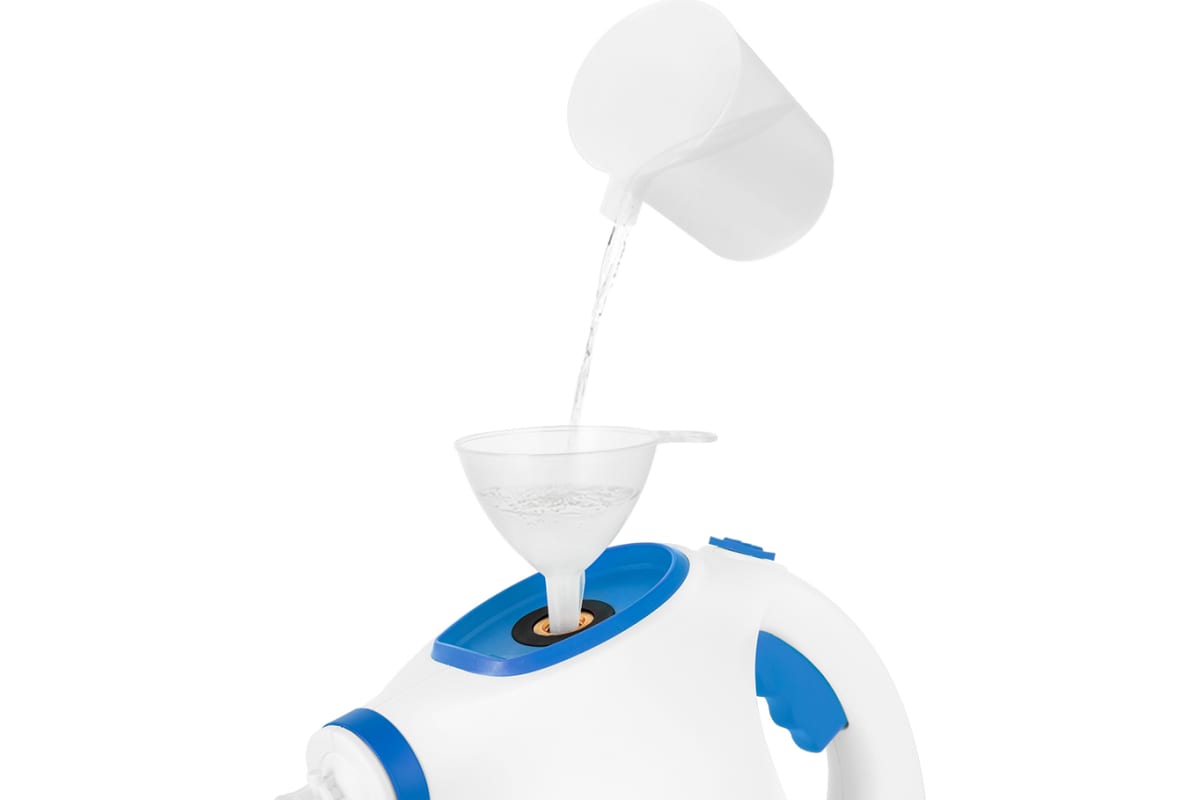 В устройство удобно наливать воду благодаря наличию воронки и мерного стакана.