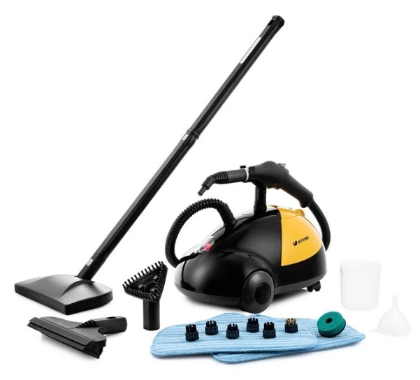 мерный стакан, воронка, удлинительные трубки, документация, тряпка для пола, насадки, ручка для переноски, отвертка