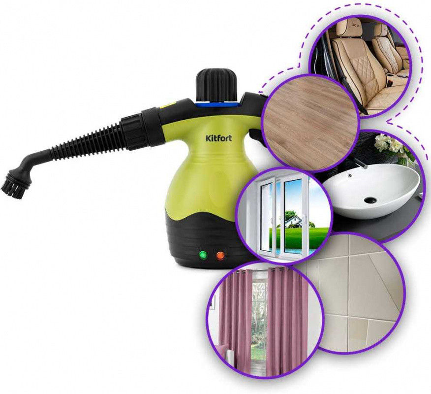 Описание: Пароочиститель Kitfort КТ-950 способен заменить паровую швабру, дезинфектор, стеклоочиститель, отпариватель для тканей. Используя силу горячего пара, пароочиститель великолепно очищает поверхности и обеспечивает деликатную глажку вещей.