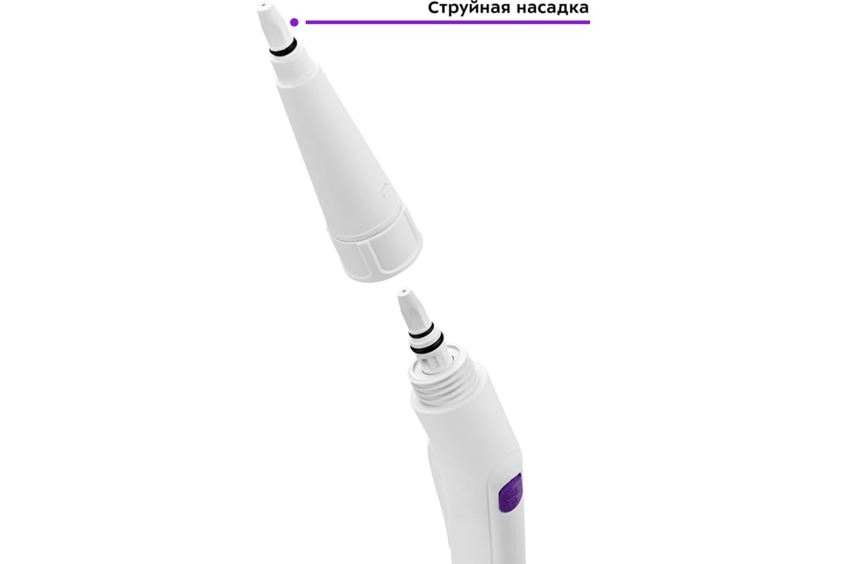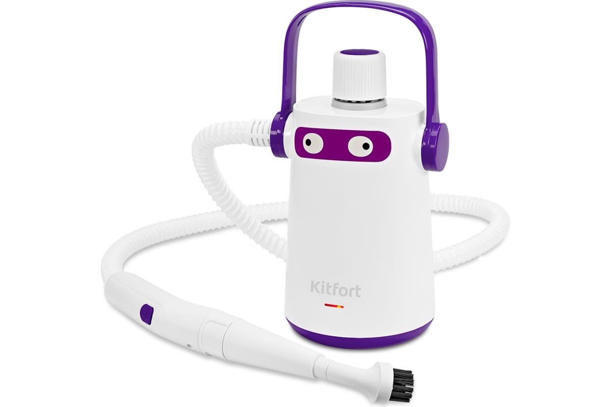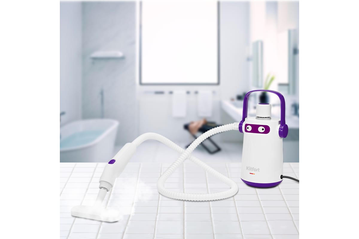 Пароочиститель KITFORT КТ-9109-1 бело-фиолетовый способен заменить дезинфектор, стеклоочиститель и отпариватель для тканей. Главное преимущество пароочистителя — прибор безопасен для здоровья человека и не приносит вреда окружающей среде.