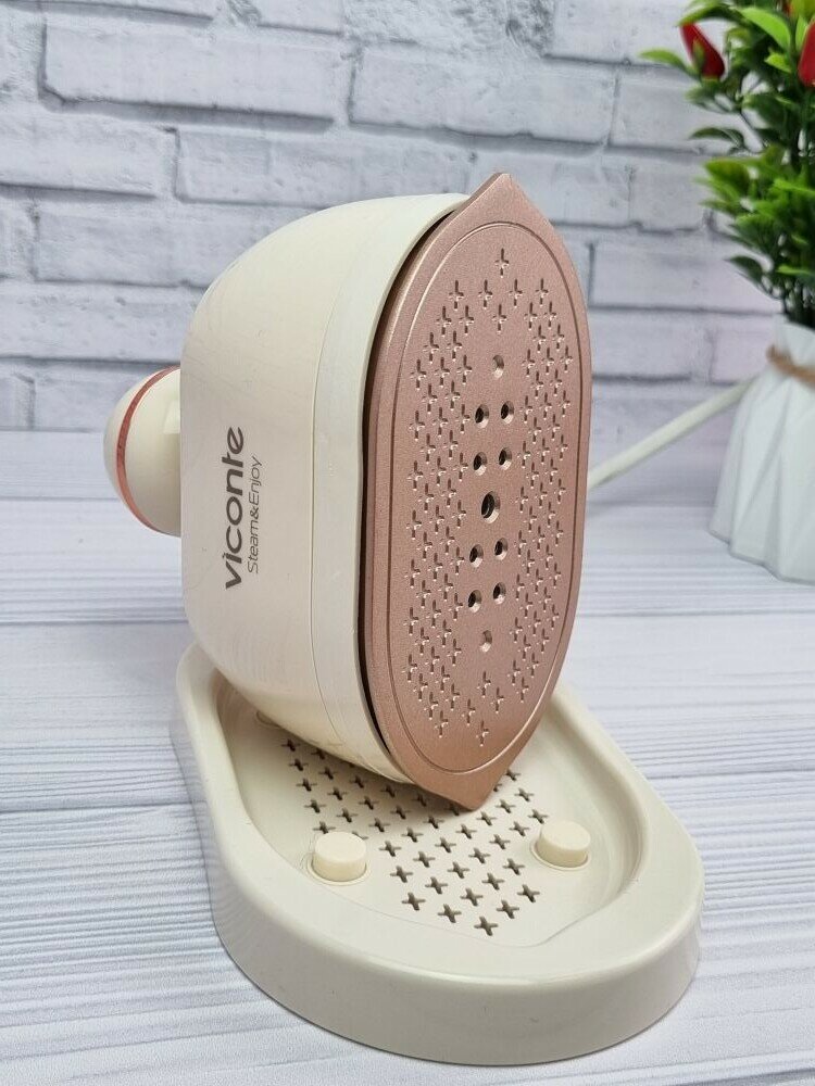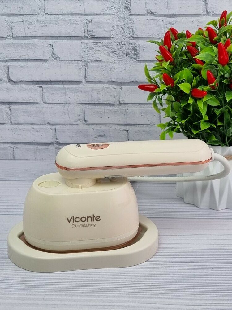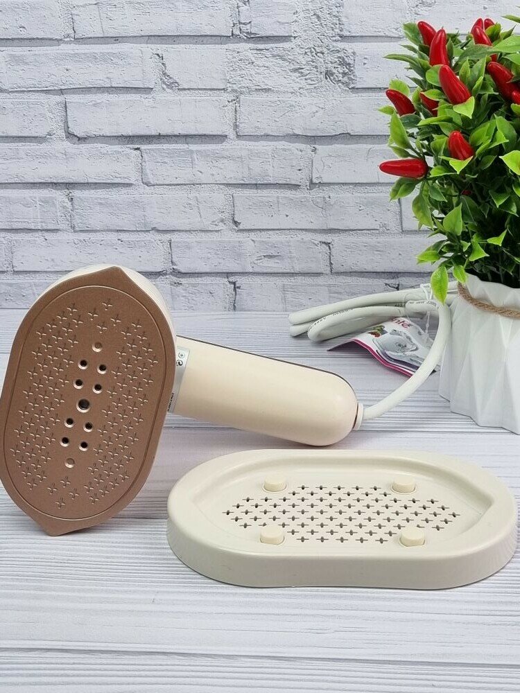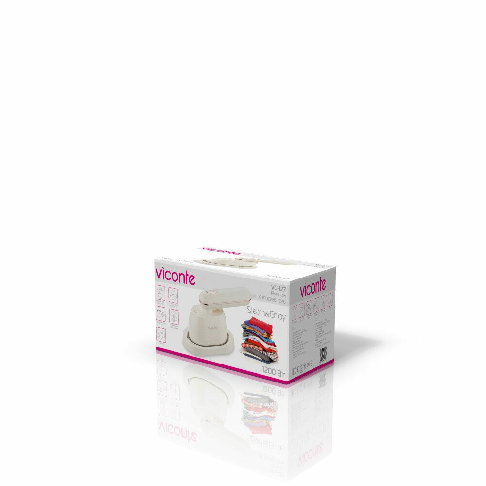 Ручной отпариватель, мощность 1200 W, объем - 100 мл, постоянная подача пара - 20 г/мин, время нагрева - 15 секунд, вращение ручки на 900 , антипригарное покрытие с армированными частицами керамики, защита от перегрева, индикатор работы. Аксессуары: мерный стакан. Длина шнура 140 см Высота с подставкой 13,5 см Длина ручки 14 см Длина утюжка 13 см Ширина утюжка 7,5 см 1