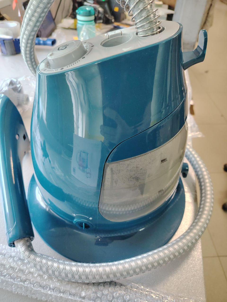 В комплекте: 4-х секционная телескопическая стойка 120 см., теплоизоляционный шланг с утюжком, насадка-щетка, вешалка для одежды, держатели для брюк, контейнер для воды, теплоизолированная рукавица