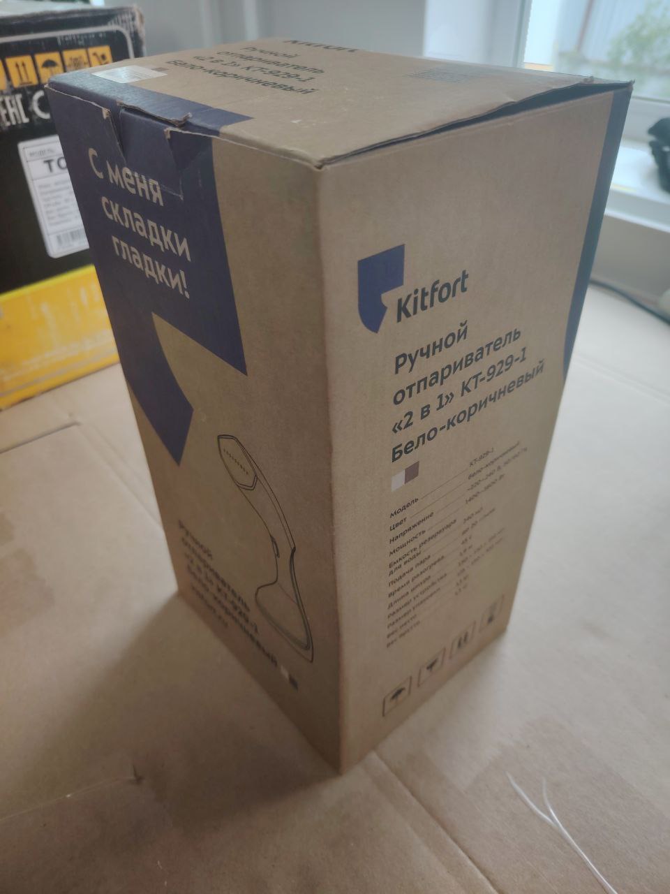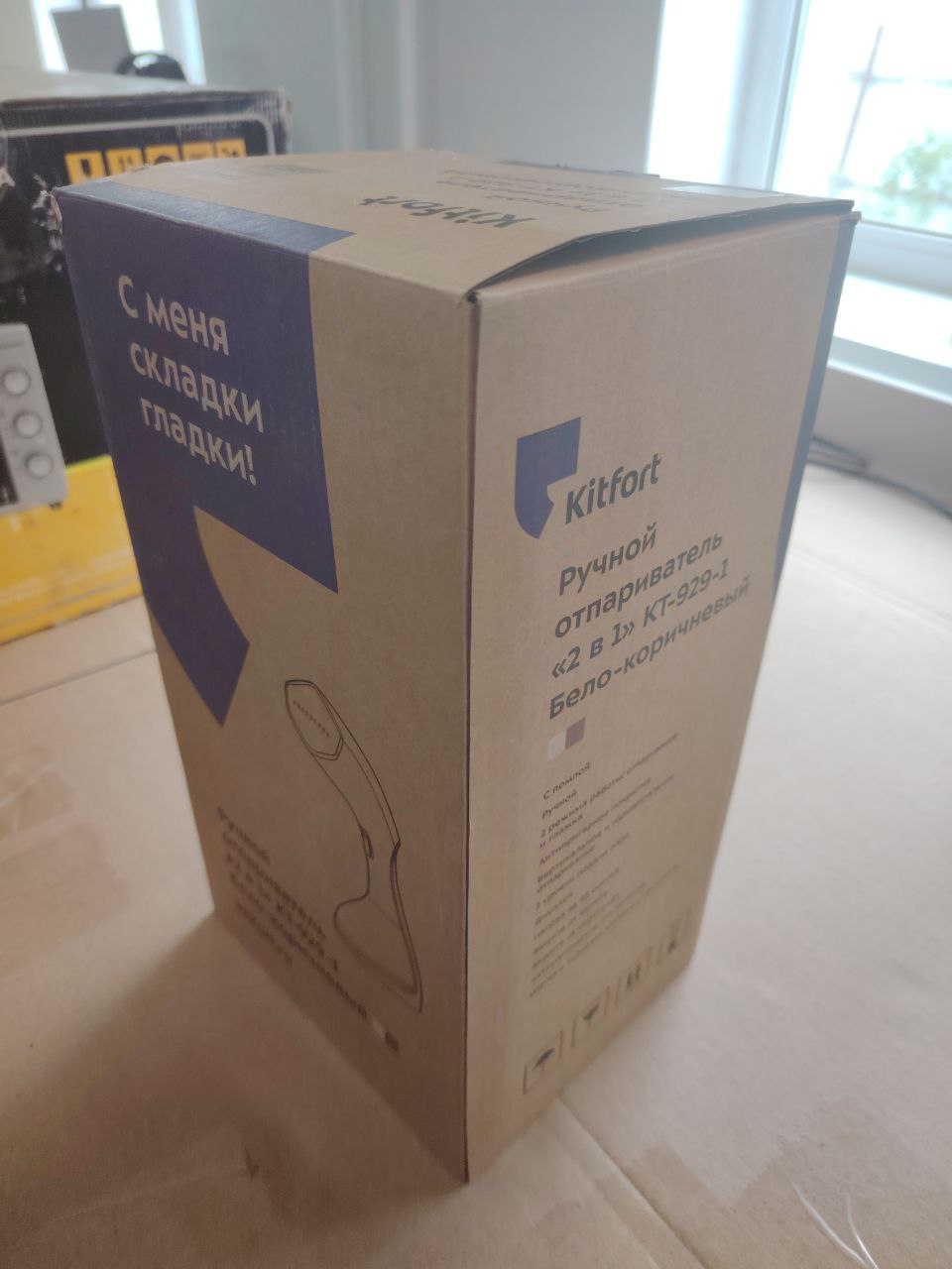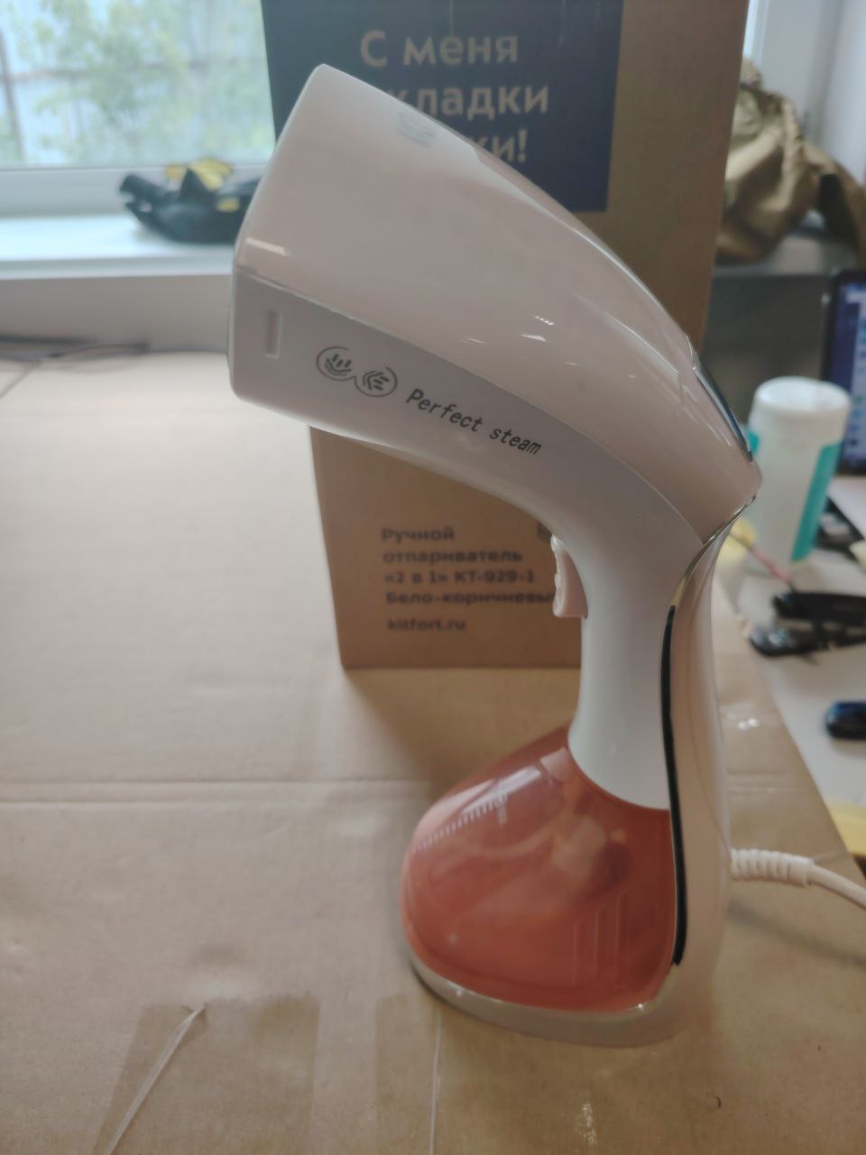 Kitfort КТ-929 оснащен помпой (водяным насосом). Это позволяет получать пар под давлением выше атмосферного, иметь два уровня подачи пара для ткани разной плотности, отпаривать не только вертикально, но и горизонтально. Кнопка подачи пара фиксируется.
