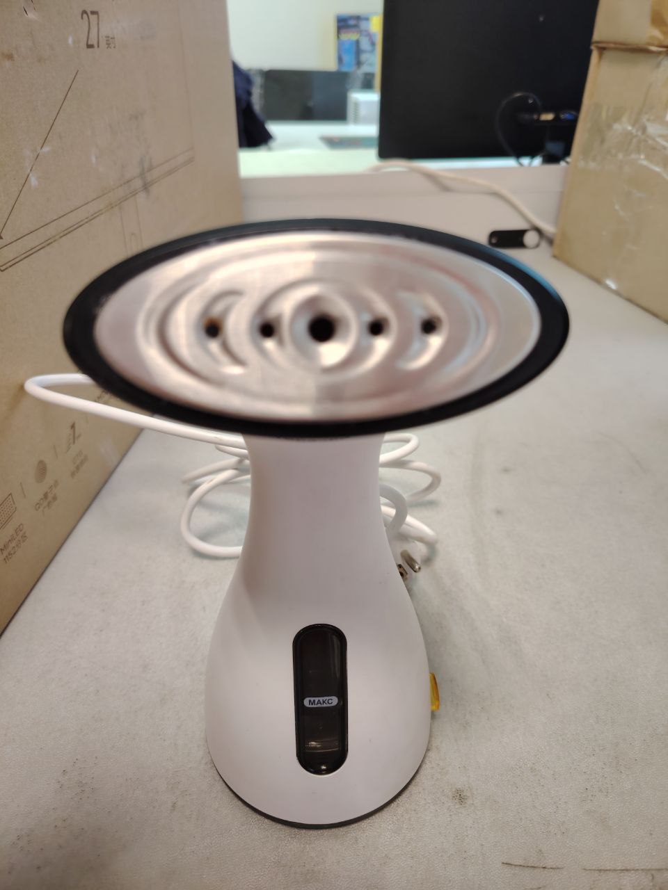 Чтобы проще было отслеживать количество воды в бойлере, устройство имеет окошко для контроля уровня воды. Для удобного добавления воды в комплекте предусмотрен мерный стакан со специальным зауженным носиком.