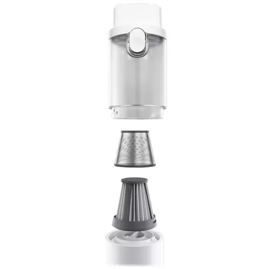 Портативный пылесос оснащен двойной системой фильтрации: съемной стальной сеткой и НЕРА-фильтром. Последний задерживает 99,5 % загрязнений. Фильтры легко промываются обычной водой.