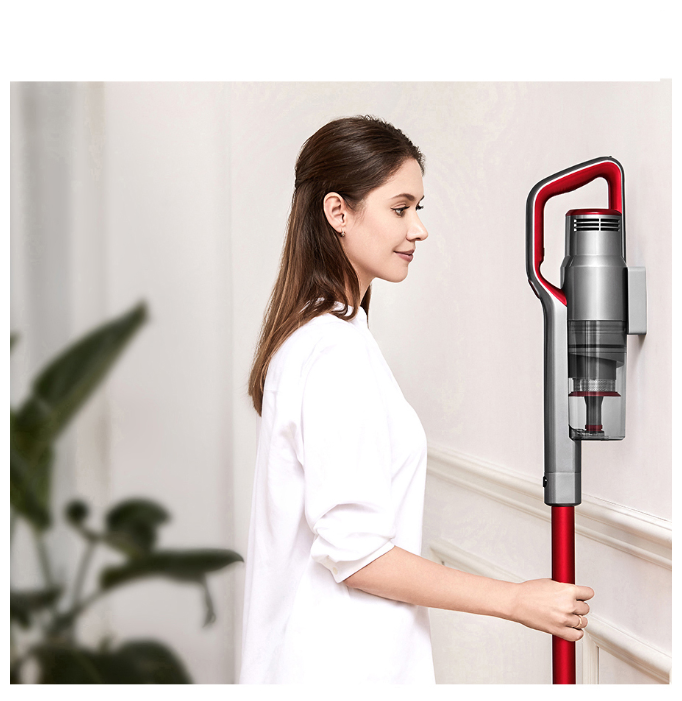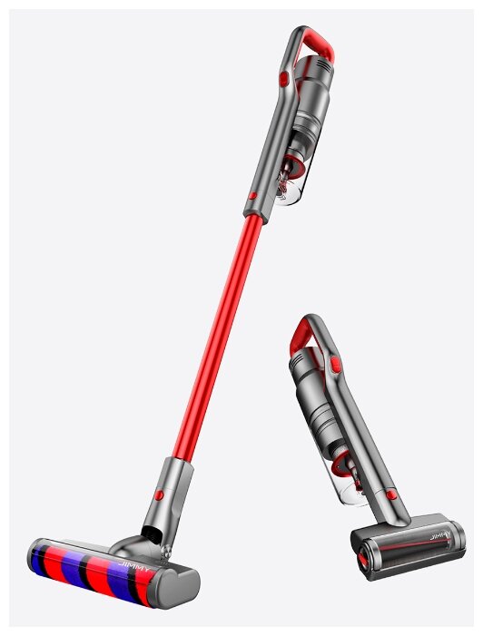 Двигатель вертикального пылесоса Jimmy JV65 создает сильный поток воздуха, под воздействием которого всасываемые частицы пыли отделяются от воздуха. Номинальная мощность пылесоса составляет 500 Вт, а эффективная мощность всасывания достигает 145 AW. Аккумулятор может управлять пылесосом в течение 45 мин в обычном режиме, и этого времени достаточно, чтобы очистить большой дом площадью до 350 кв. м. без дополнительной подзарядки. В комплекте доступны две турбощетки для пола. Комбинированная щетка состоит из мягких и жестких волокон и отлично подойдет для ковровых покрытий. Мягкая турбощетка подходит для очистки твердых покрытий и полировки. Держатель прикручивается к стене и удерживает пылесос в вертикальном положении.