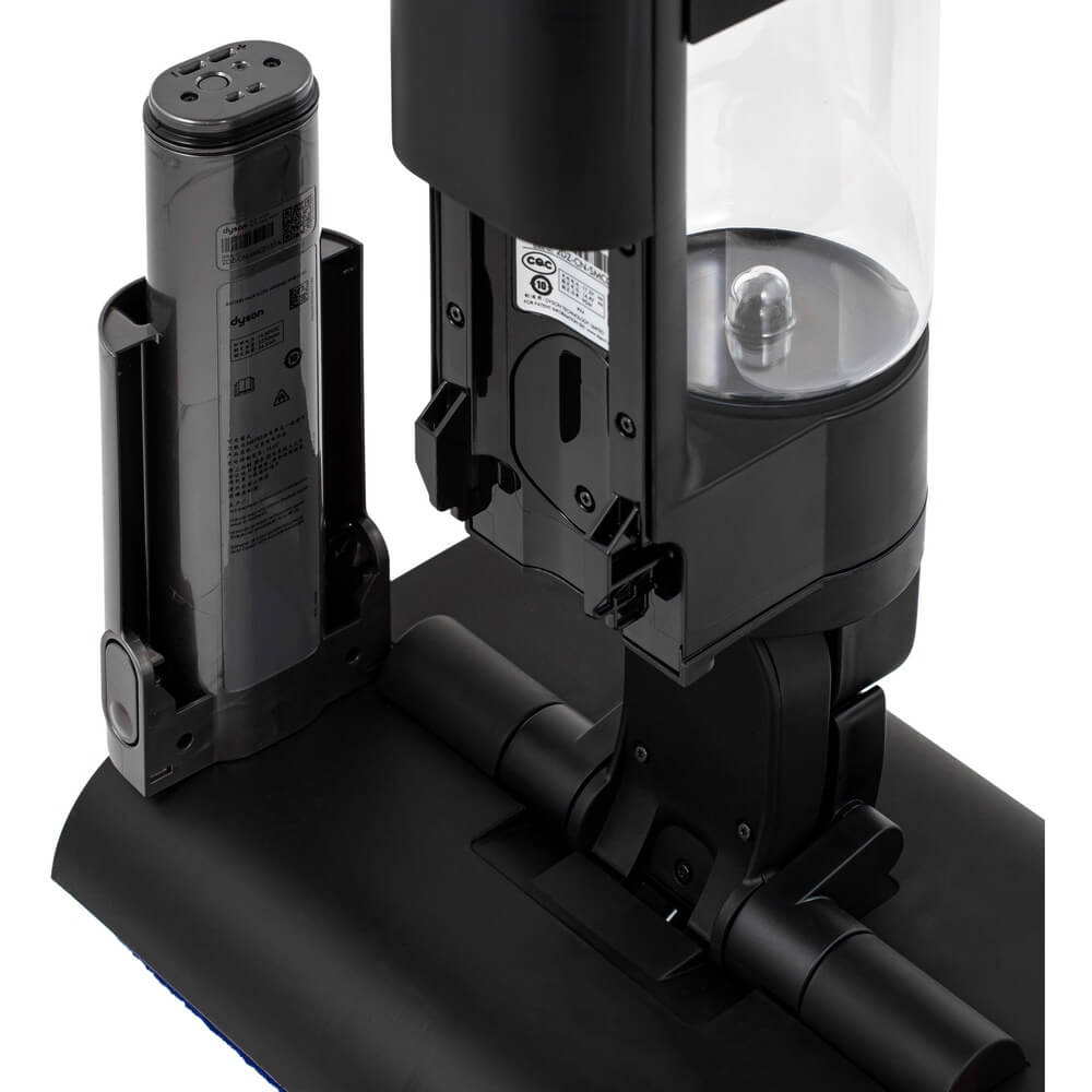 После уборки ролики проходят цикл самоочистки; грязная вода остаётся в отдельном контейнере, который легко опорожнить. В конструкции нет влажных губок с застоявшейся водой — Dyson позиционирует устройство как более гигиеничное решение по сравнению с мокрыми швабрами.