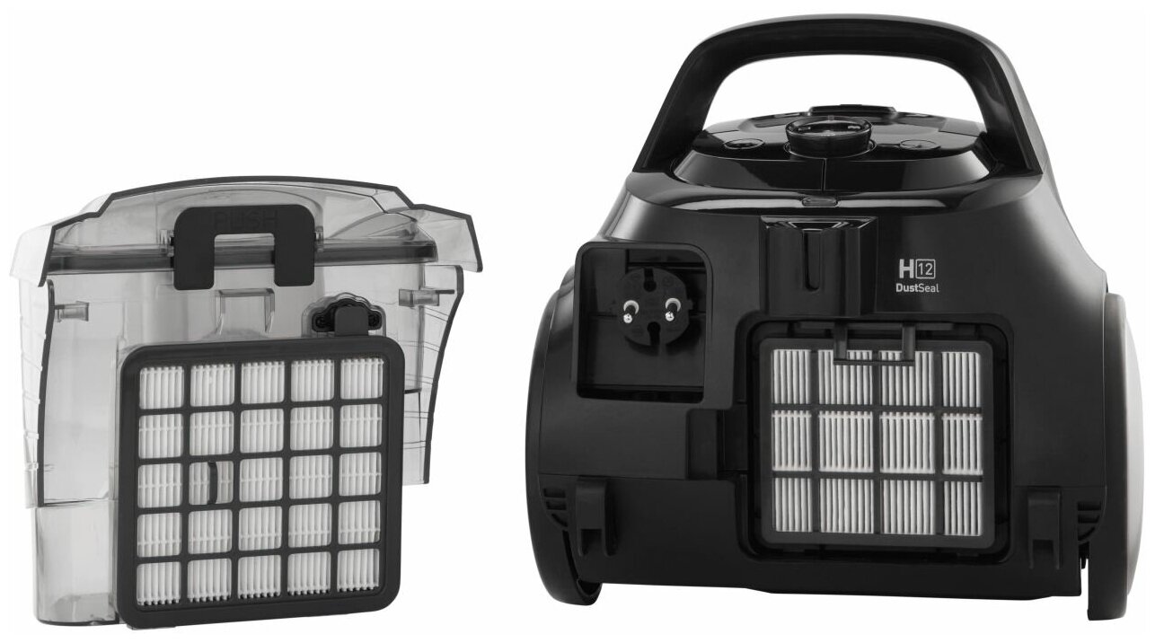 вертикальная парковка, индикатор заполнения пылесборника, ножной переключатель вкл./выкл., регулятор мощности на корпусе