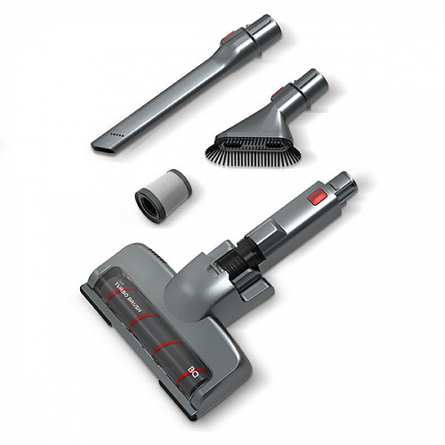 Беспроводной пылесос, контейнер для сбора пыли, телескопическая трубка, щетка для мебели, узкая насадка, электрощетка, настенное крепление, зарядное устройство, съемный аккумулятор, щетка для очистки аксессуаров, дополнительный фильтр HEPA H11, руководство