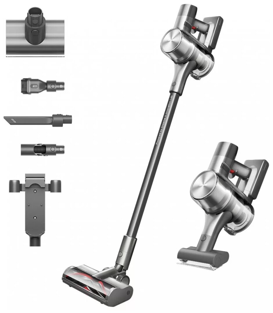 3 режима работы, моющийся фильтр; в комплекте: корпус пылесоса, удлинитель, щётка "2 в 1", модуль универсальной щётки, крепление "2 в 1" для зарядки и хранения, насадка для щелей, аккумулятор, электрическая мини-щётка