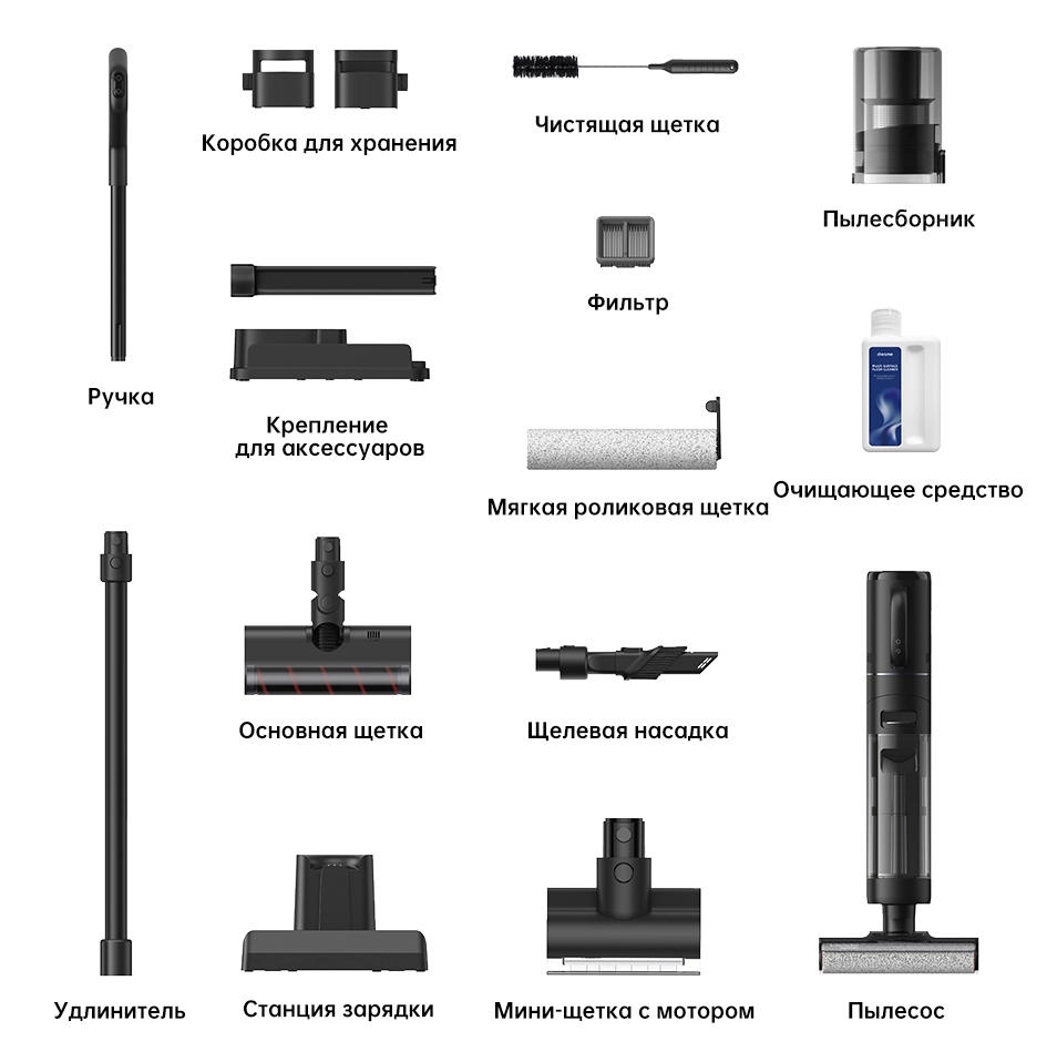 Тип щетки Мягкая роликовая щетка, Щелевая насадка, Мини-щетка с мотором
