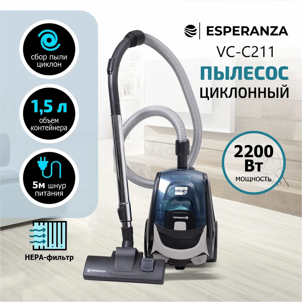 Пылесос ESPERANZA VC-C211, черный, 2200Вт, объем 1,5 л