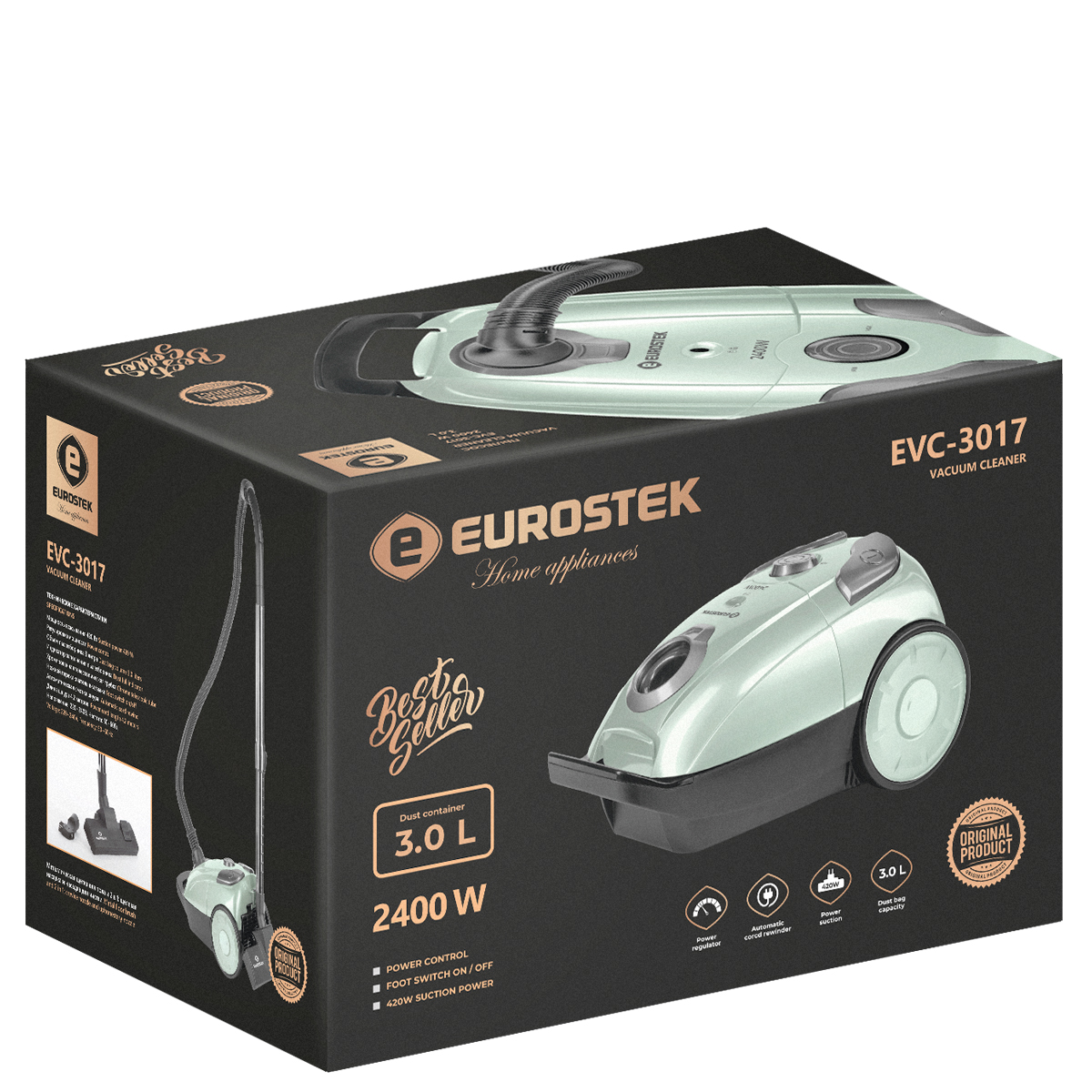 Пылесос электрический Eurostek EVC-3017 обладает мощностью 2400 Вт, а