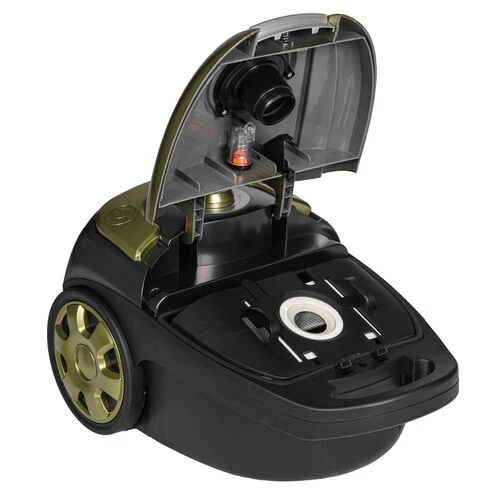 2 больших колеса, индикатор заполнения пылесборника, ручка для переноски, сменный пылесборник
