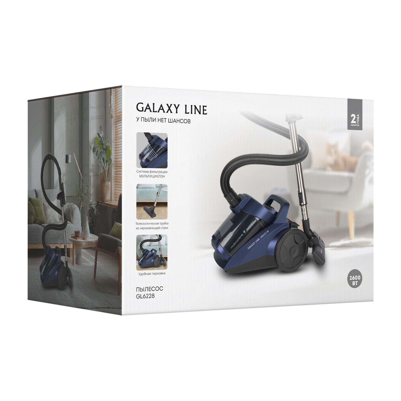 Дополнительные характеристики: Всасывание 350 аэроватт / Система фильтрации «Мультициклон» / Телескопическая трубка из нержавеющей стали 79 см / Длина гибкого шланга 1,4 м