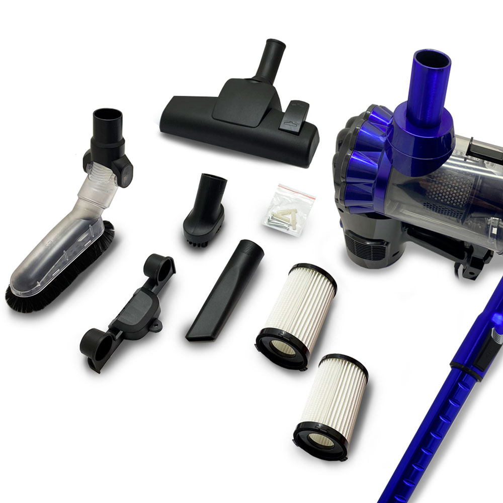 комплектация: пылесос,телескопическая трубка, насадка для пола, насадка мебели, насадка щелевая, фильтр,настенное крепление, инструкция