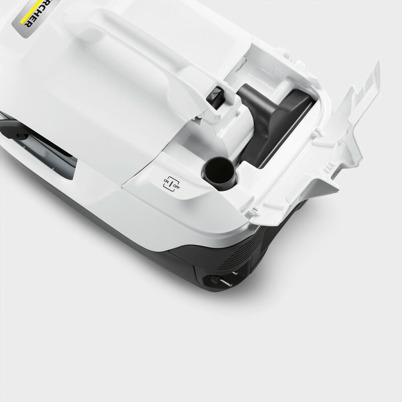 На время перерывов в работе удлинительная трубка со шлангом и насадкой для пола быстро закрепляется на корпусе пылесоса. Хранение аппарата с экономией места.