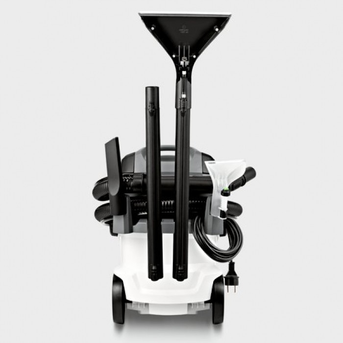 | Тип | хозяйственный | | Уборка | сухая и влажная | | Моющий пылесос |  | | Пылесборник | аквафильтр + мешок |  |  | | Характеристики | | Потребляемая мощность | 1400 Вт | | Объем пылесборника | 4 л | | Объем емкости для воды | 4 л | | Сбор воды |  |  |  | | Насадки в комплекте | | Функции насадок | комбинированная (пол/ковер) щелевая для мягкой мебели / обычная, моющая /