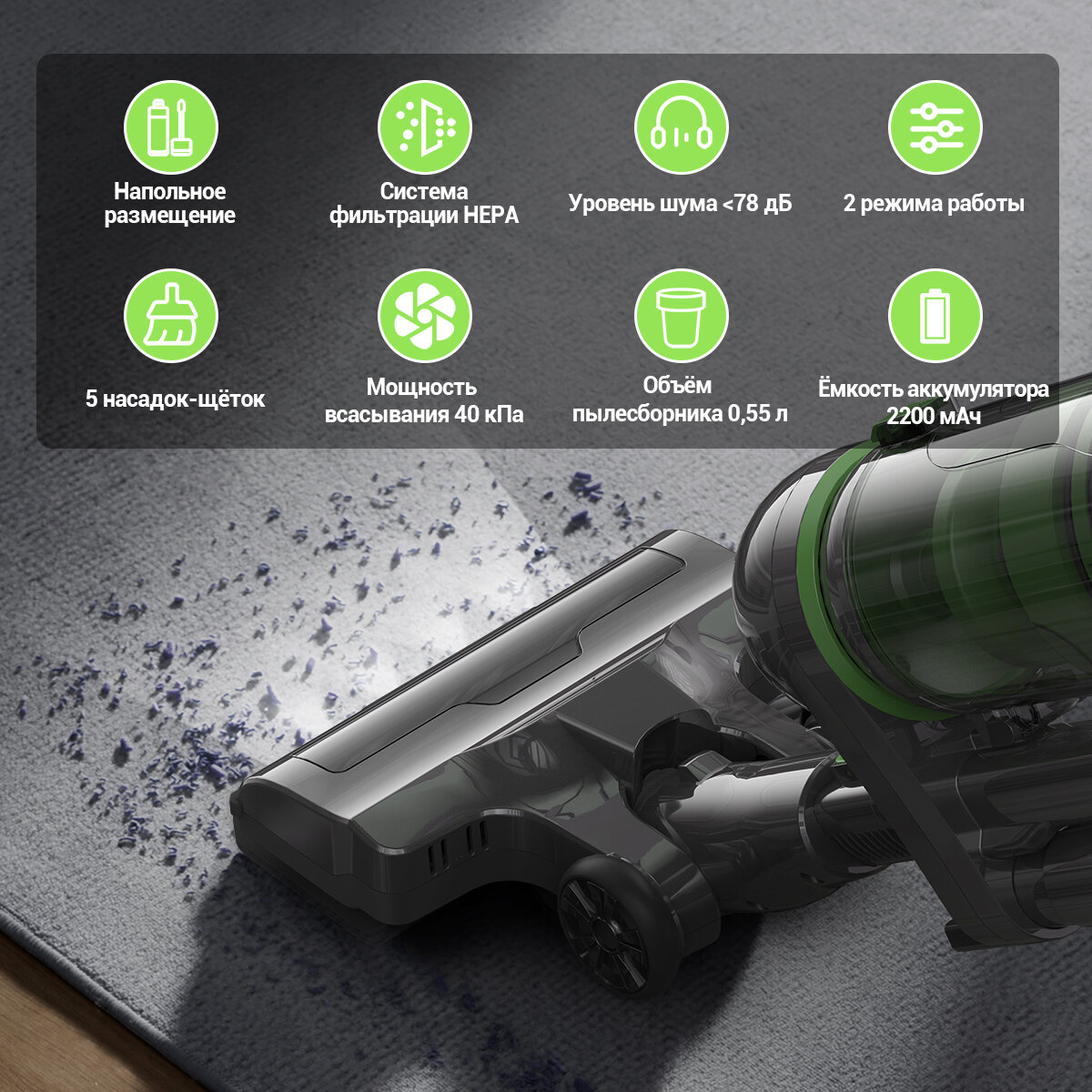 Аккумуляторный пылесос KaringBee V100 сочетает в себе мощность и удобство, позволяя легко убирать в любом месте вашего дома. Оснащенный емким аккумулятором 2200 мАч, он имеет длительное время автономной работы, что позволяет без проблем убирать большие площади. Благодаря отсутствию шнура вы можете свободно перемещаться по всем комнатам, не беспокоясь о длине шнура или поиске розетки.