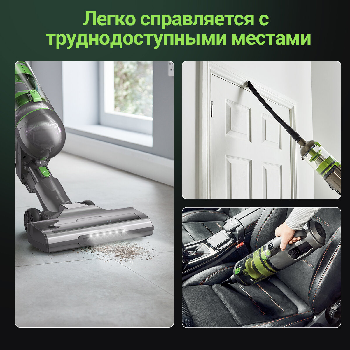 возможность использования в автомобиле, подсветка зоны уборки