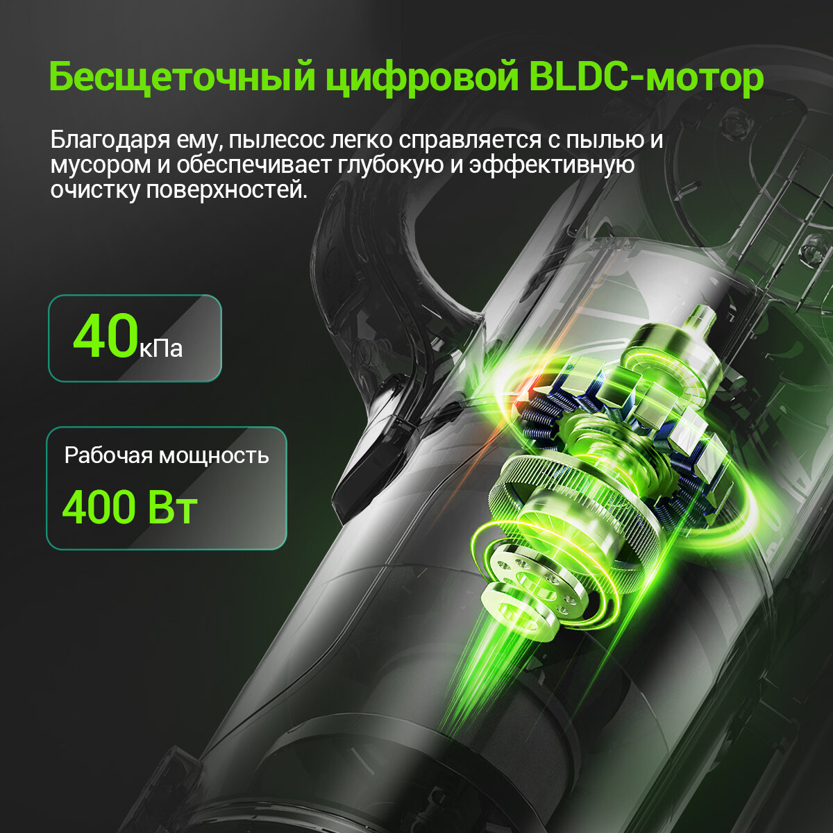 В KaringBee V100 используется усовершенствованный бесщеточный двигатель BLCD и многоконусная система фильтрации, обеспечивающая мощность всасывания до 40 кПа, что позволяет легко справляться с различными задачами по уборке.