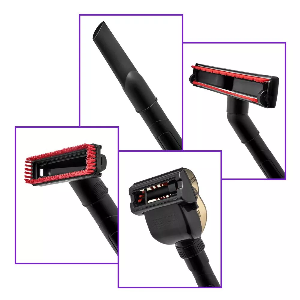 Типы насадок в комплекте щетка для паркета, узкая щетка, турбощетка, напольная щетка