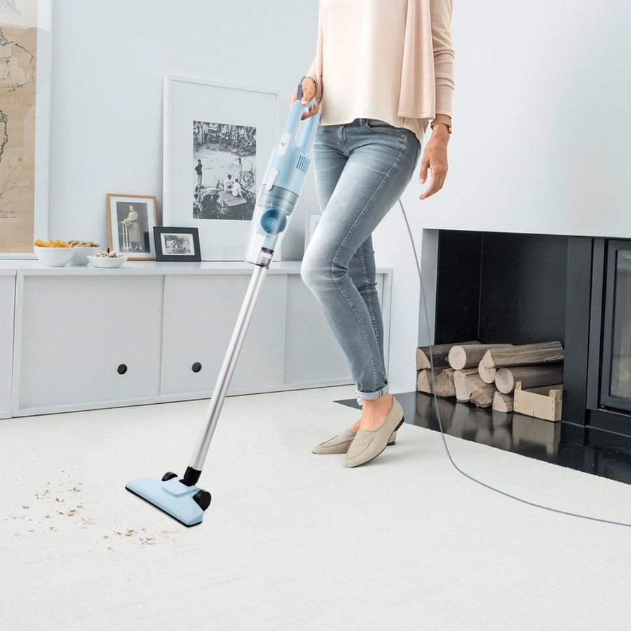 мощность: 600Вт; с контейнером для пыли; объем пылесборника 1.2л, цвет: голубой