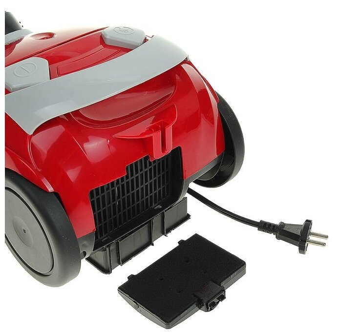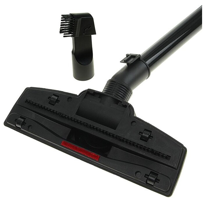 индикатор заполнения пылесборника, место для хранения насадок, ножной переключатель вкл./выкл., регулятор мощности на корпусе
