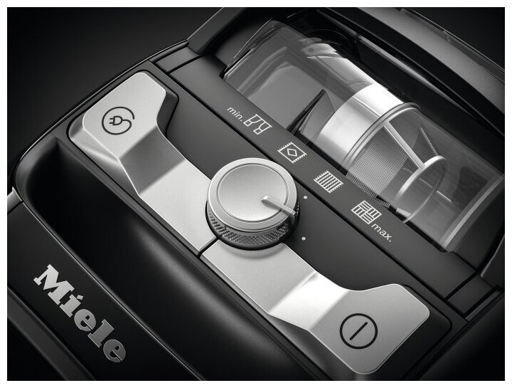 индикатор заполнения пылесборника, регулятор мощности на корпусе