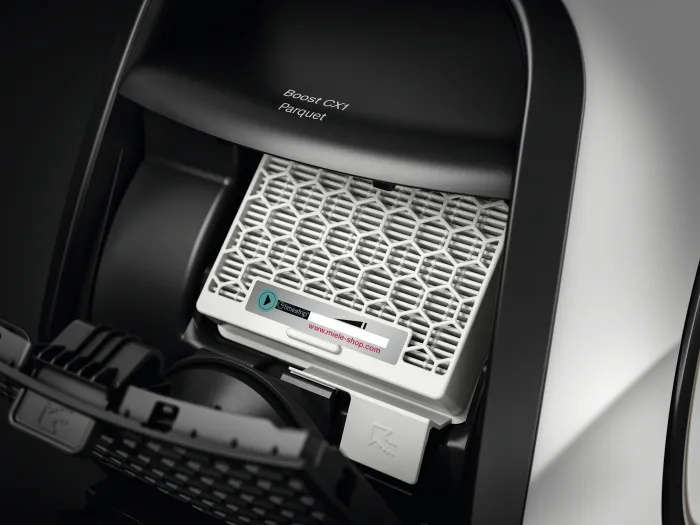 Благодаря системе TrackDrive безмешковый пылесос Miele Boost CX 1 послушно следует за пользователем. Колёса по бокам обеспечивают устойчивость прибора и задают ему нужное направление движения. Это защищает мебель и дверные проёмы от повреждений. Кроме того, им легко и удобно управлять, что обеспечивает высокие результаты уборки.