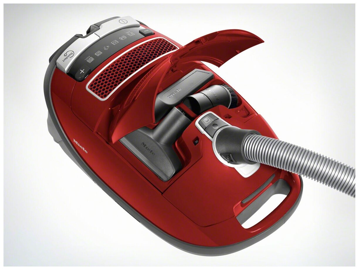 вертикальная парковка, индикатор заполнения пылесборника, место для хранения насадок, мягкий бампер, ножной переключатель вкл./выкл., регулятор мощности на корпусе