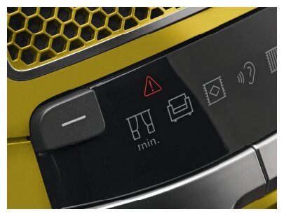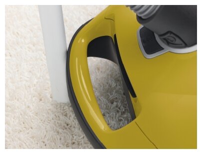 вертикальная парковка, мягкий бампер, индикатор заполнения пылесборника, регулятор мощности на корпусе
