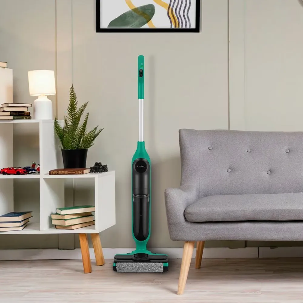 Беспроводной вертикальный моющий пылесос КТ-5223 очень удобен при проведении влажной уборки. Благодаря работе от аккумулятора во время использования пылесос не нужно включать в сеть, следовательно, провода не будут мешать под ногами.