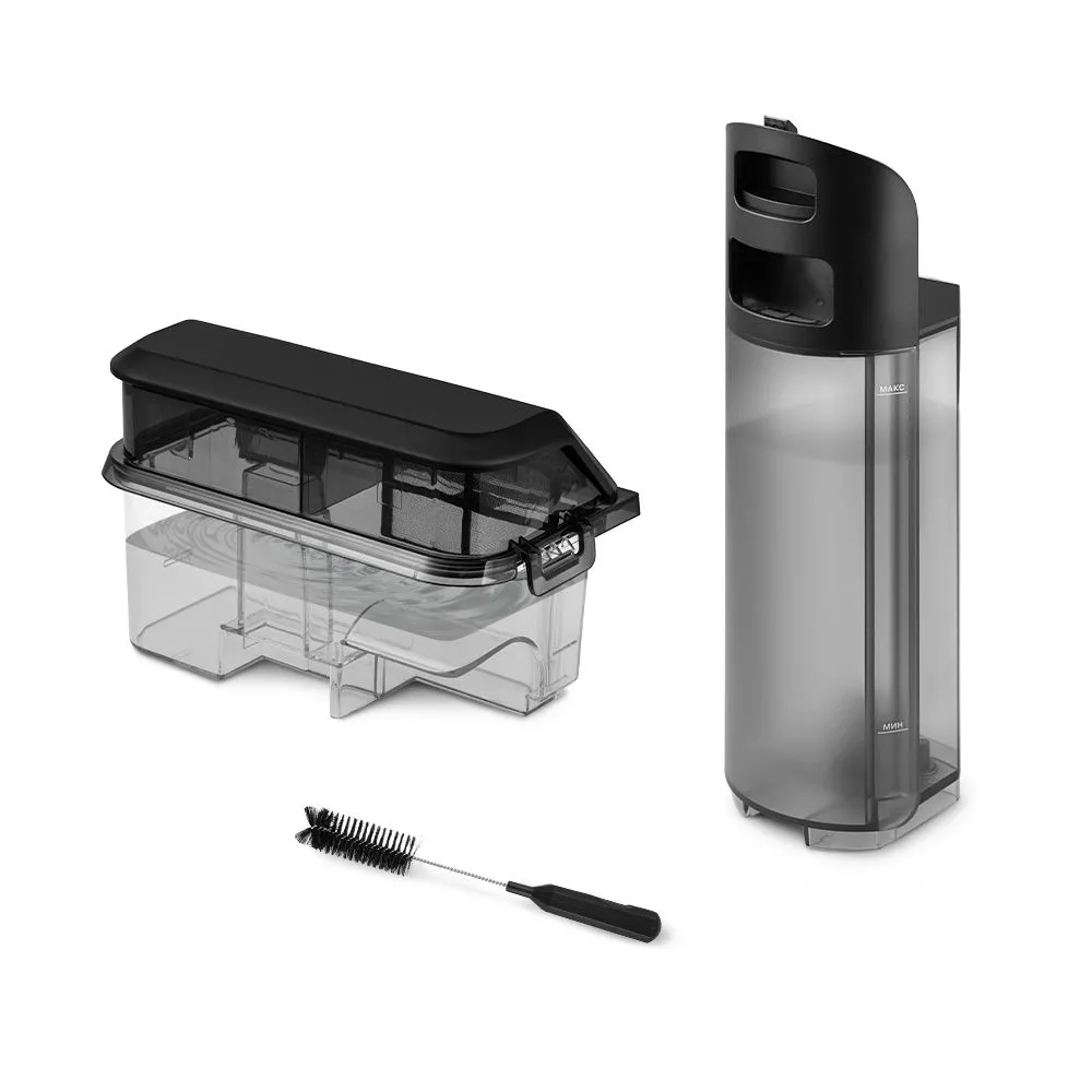 Моющий пылесос оснащён функцией самоочистки, что очень удобно и экономит время. Резервуары для чистой и грязной воды, крышка и валик турбощётки легко снимаются и очищаются. В комплекте также идёт щётка для чистки с лезвием.