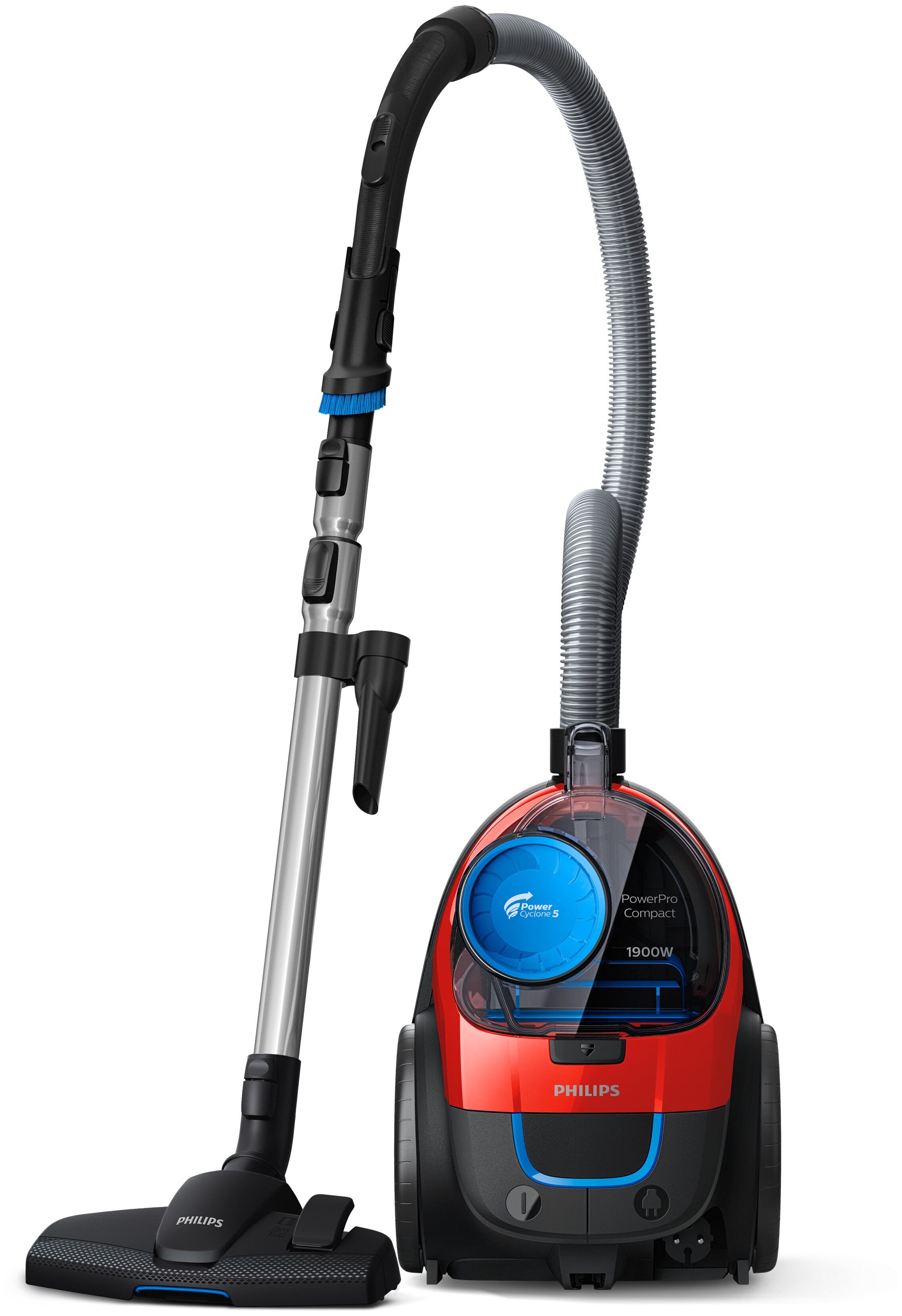 тип: традиционный пылесос, тип пылесборника: контейнер, тип уборки: сухая, мощность всасывания: 370 Вт, потребляемая мощность: 1900 Вт, дополнительные функции: автоматическое сматывание шнура, труба всасывания: телескопическая, фильтр тонкой очистки, объем пылесборника: 1.50 л, уровень шума: 82 дБ, вес: 4.50 кг, длина сетевого шнура: 6 м