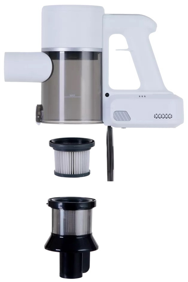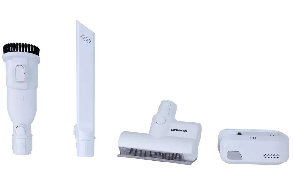 Комплектация: щелевая насадка, насадка 2 в 1, мини турбощетка, зарядное устройство, электрическая щетка для пола, напольная подставка, щеточка для очистки, батарея, труба