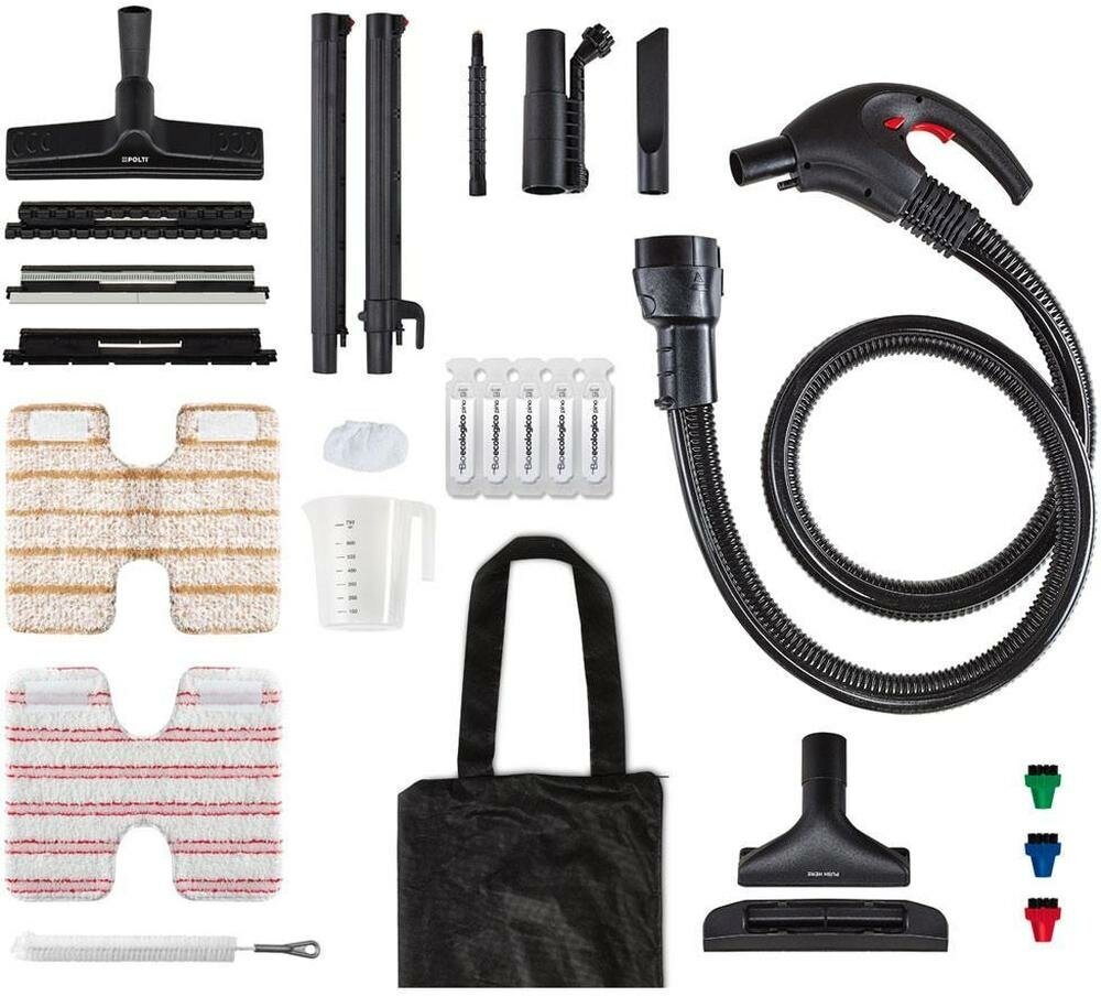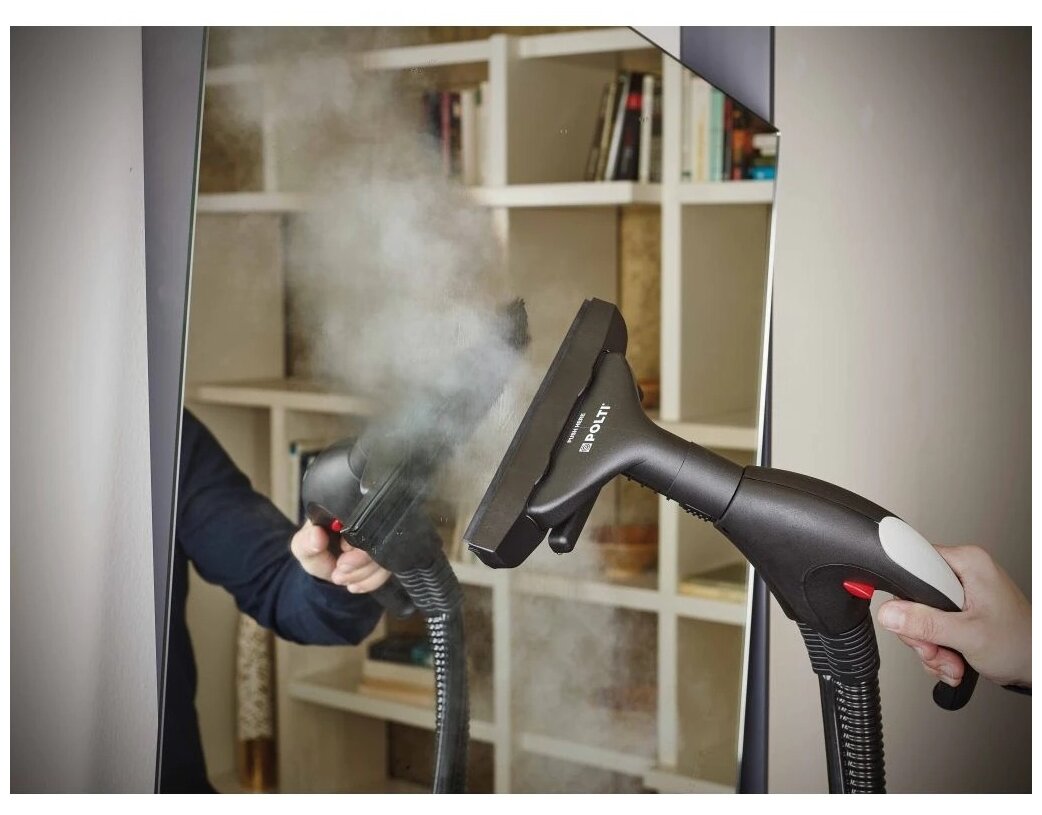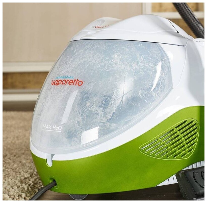 время нагрева: 6 мин; давление: 6 бар; емкость пылесборника: 1.2 л (вода) + 1.8 л (мусор); НЕРА H13; ЖК-экран; 10 предустановленных программ для автоматической уборки; мощность двигателя: 1350 Вт; мощность котла: 1100 Вт; регулировка всасывания и пара; отключение при перегреве