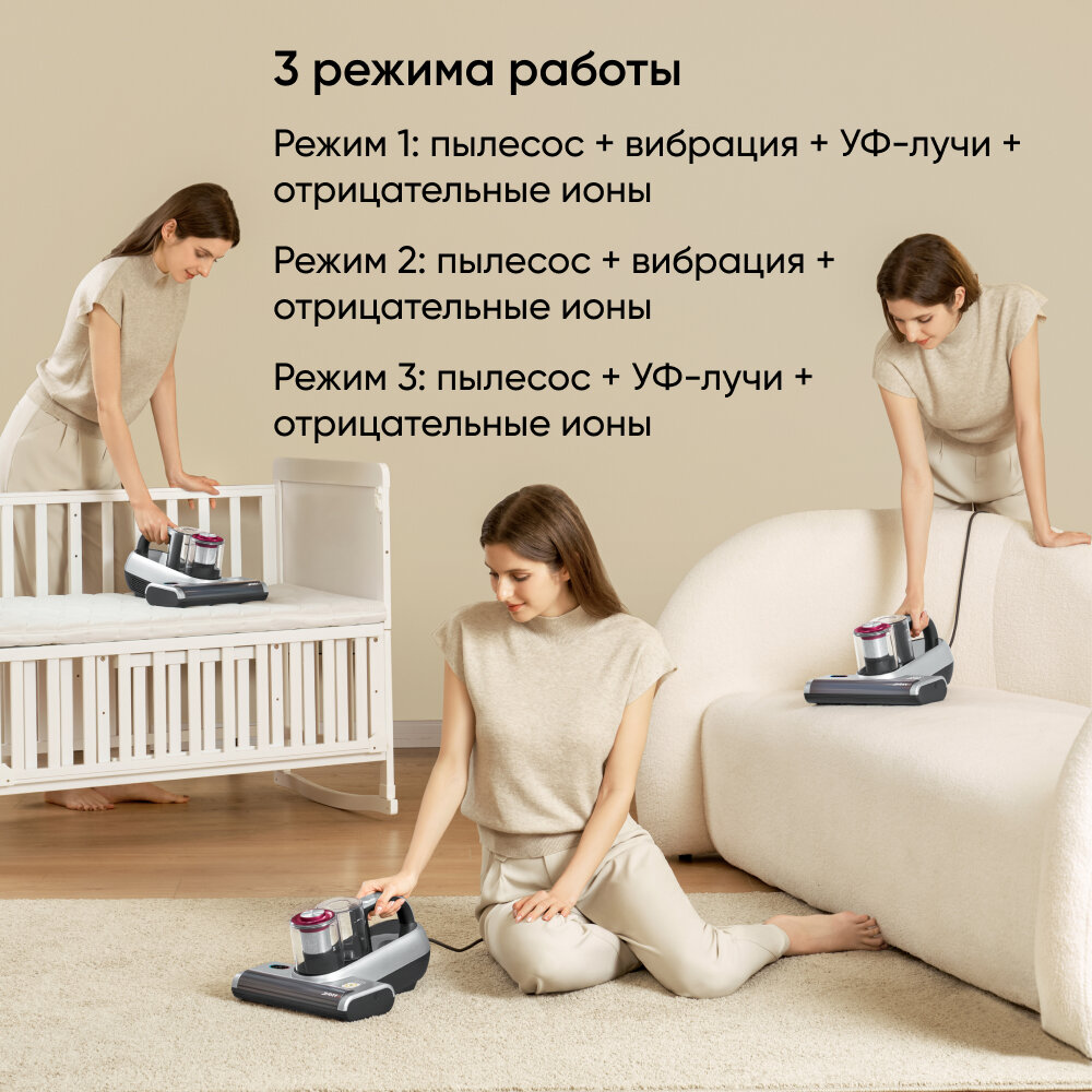 Уникальная двойная конструкция пылесборника, Широкая щетка для эффективного удаления клещей, светодиодный дисплей, уф лампа