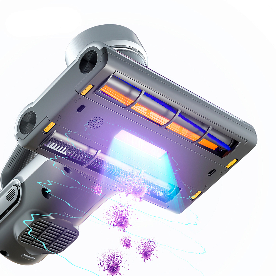 Модернизированные запатентованные* двойные роликовые щетки обеспечивают двойную вибрацию и большую мощность всасывания. Быстро удаляют шерсть домашних животных, пыль с диванов, кроватей, ковров и т. д, избавляя от бактерий и аллергенов на 99,9%.