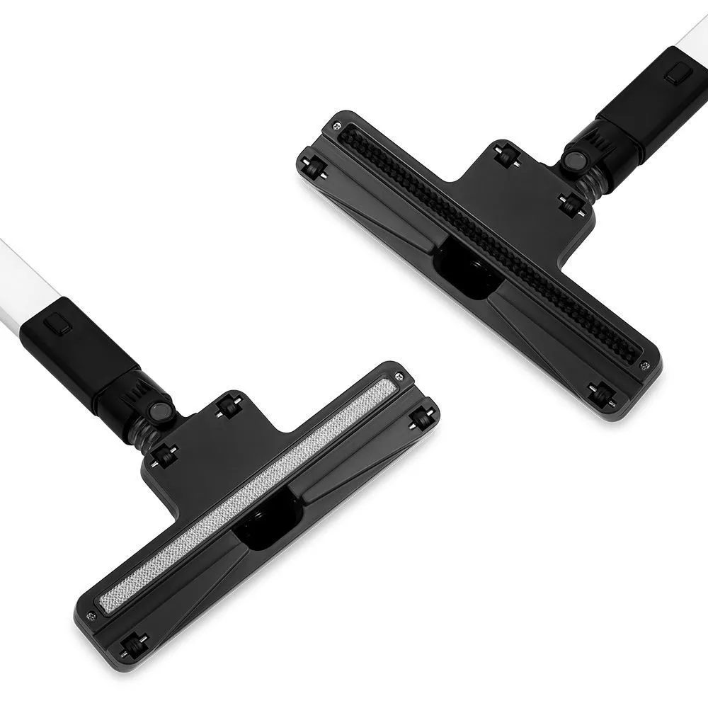 Напольная щётка вращается в двух плоскостях и имеет две сменные насадки: с ворсом и микрофиброй, для более качественной уборки ковровых покрытий. Они помогут собрать волосы и шерсть животных, которые трудно удалить одним лишь потоком всасываемого воздуха.
