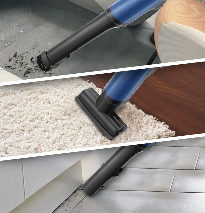 мощность: 120Вт; с контейнером для пыли; объем пылесборника 0.5л, с фильтром тонкой очистки, цвет: синий/черный