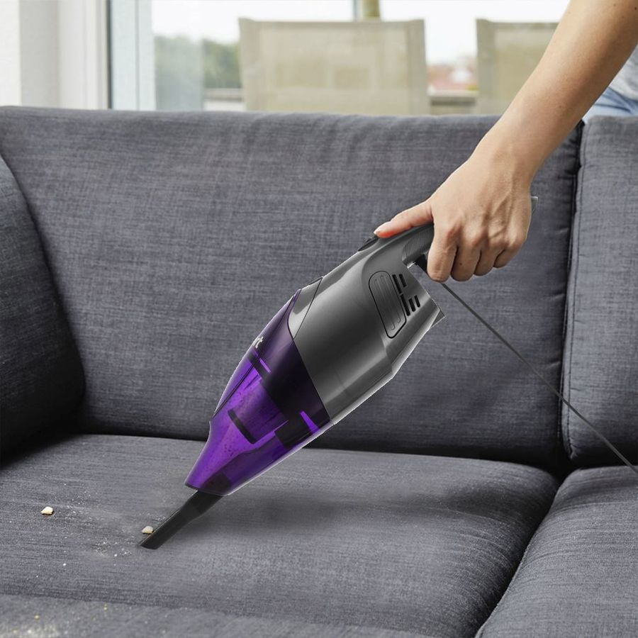мощность: 600Вт; с контейнером для пыли; объем пылесборника 0.5л, с фильтром тонкой очистки, цвет: серый/фиолетовый